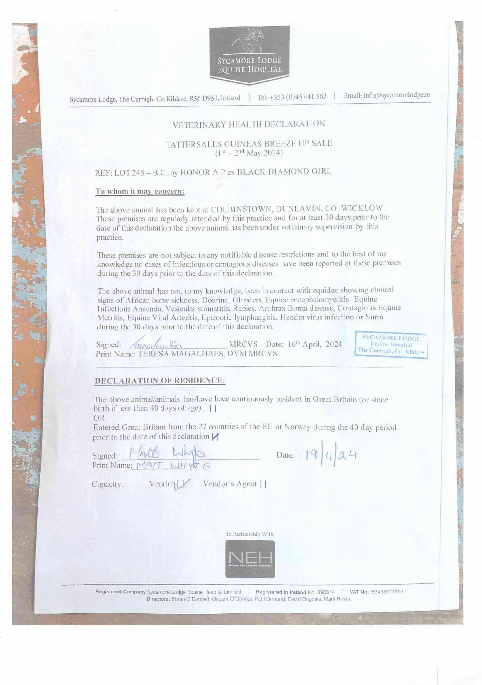 Health Certificate