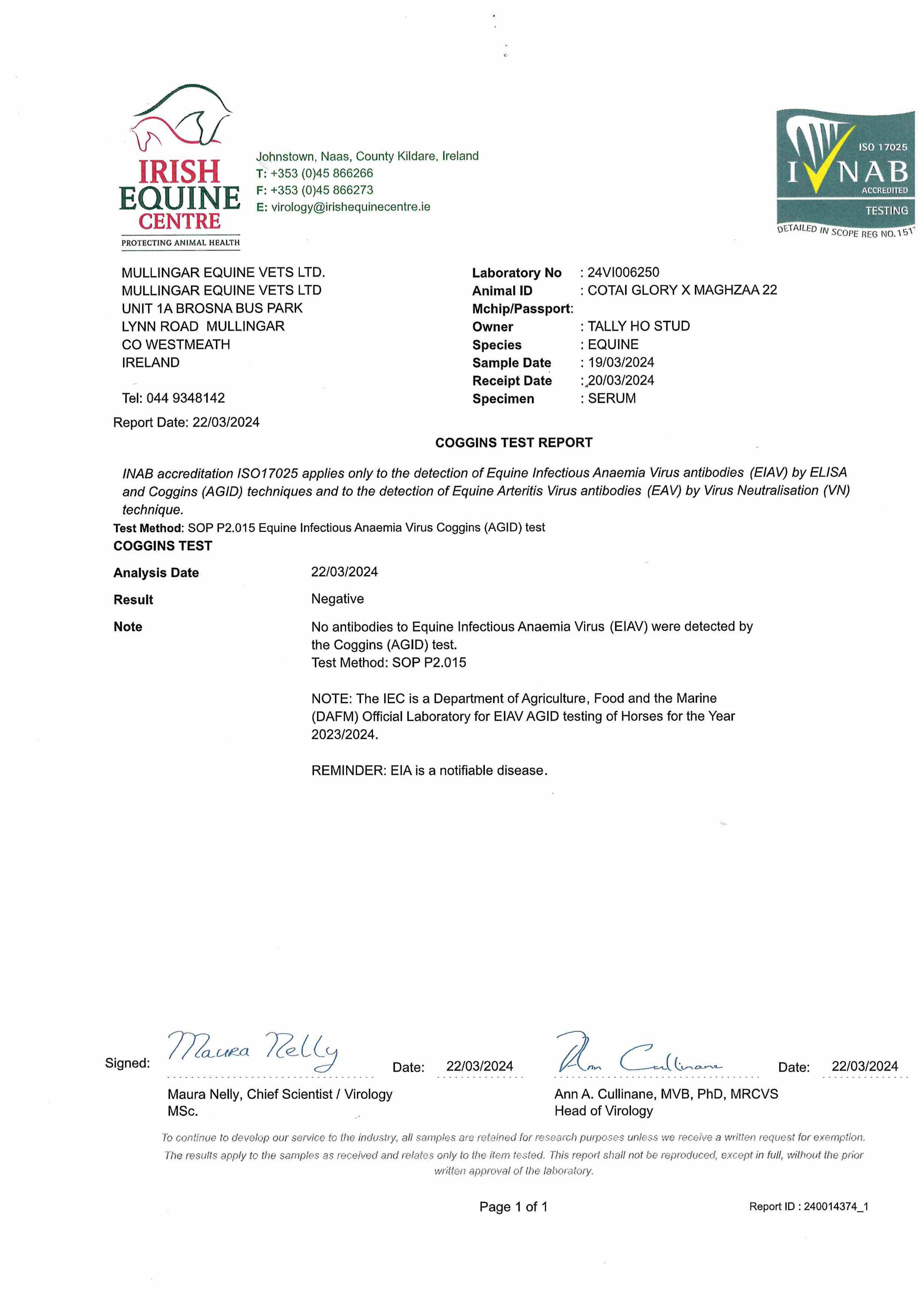 Consignor: Tally-Ho Stud, Ireland
