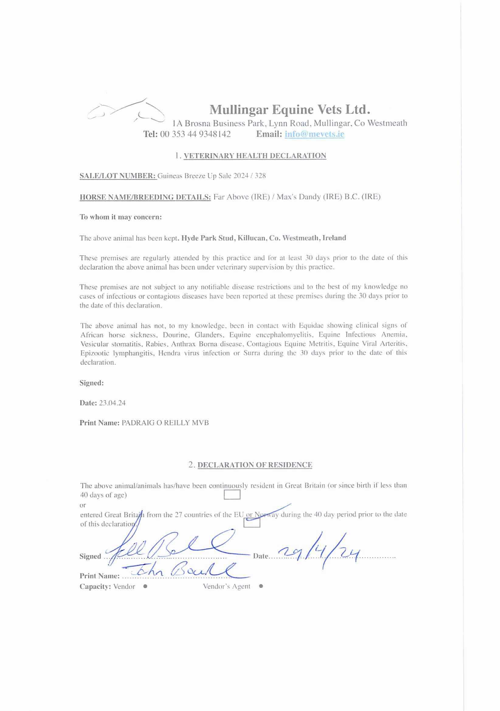 Consignor: Hyde Park Stud, Ireland