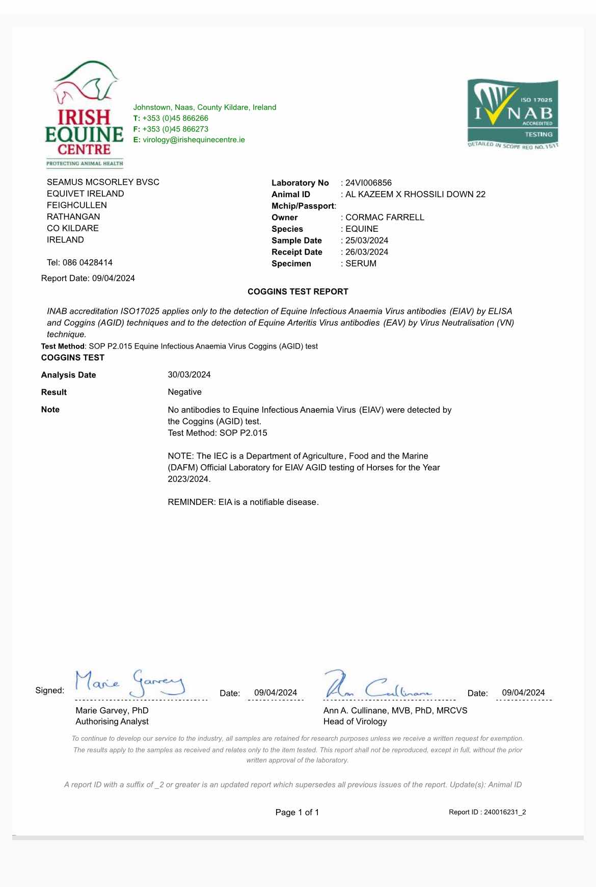 Wednesday 17 April: