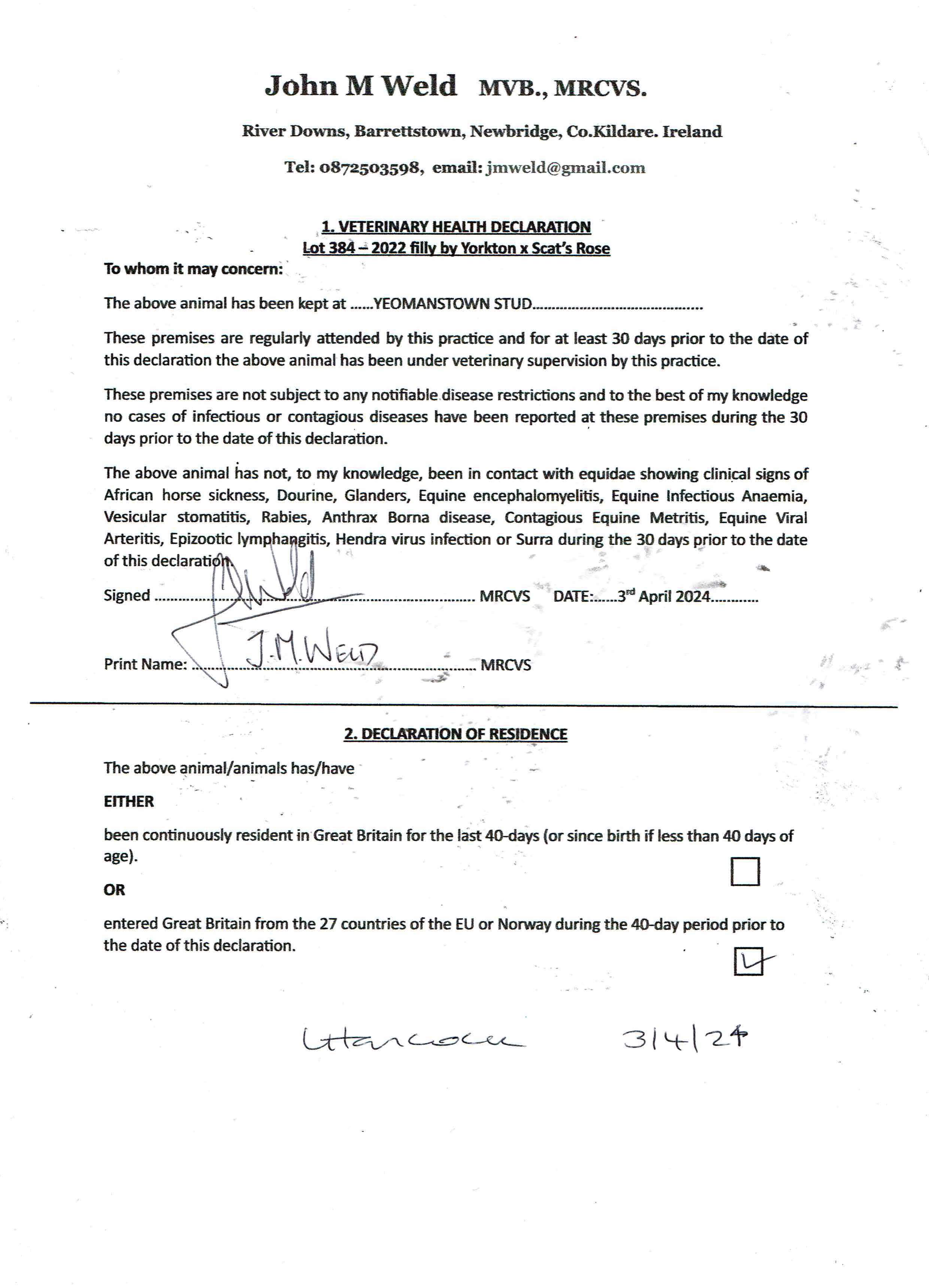 February Sale 2026 lot 303 Bennyworth (IRE) (C. by Supremacy (IRE)), Green Ridge Stables (J. Owen)=>James Finch 11,000 gns