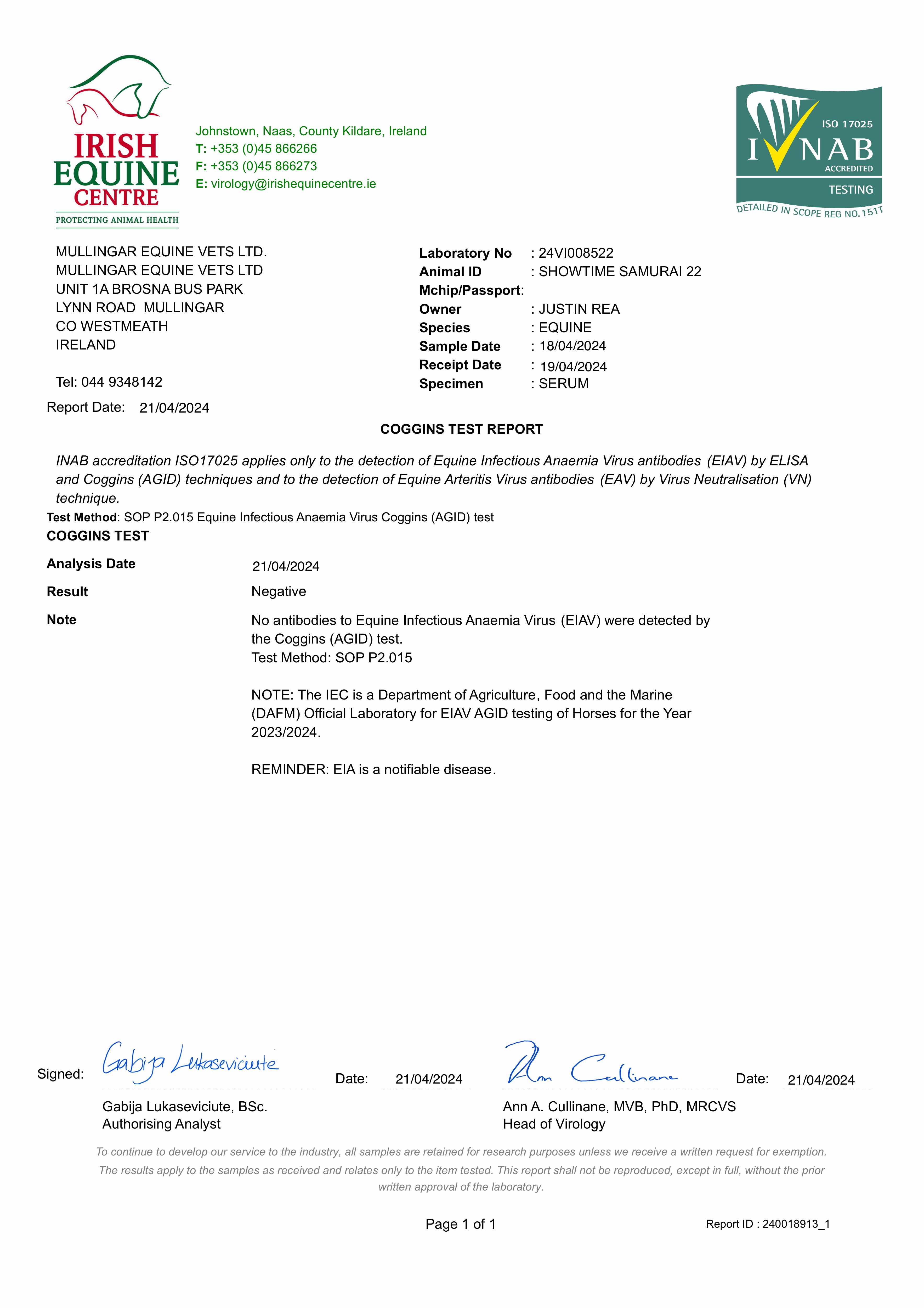 EIA High Risk Certificate