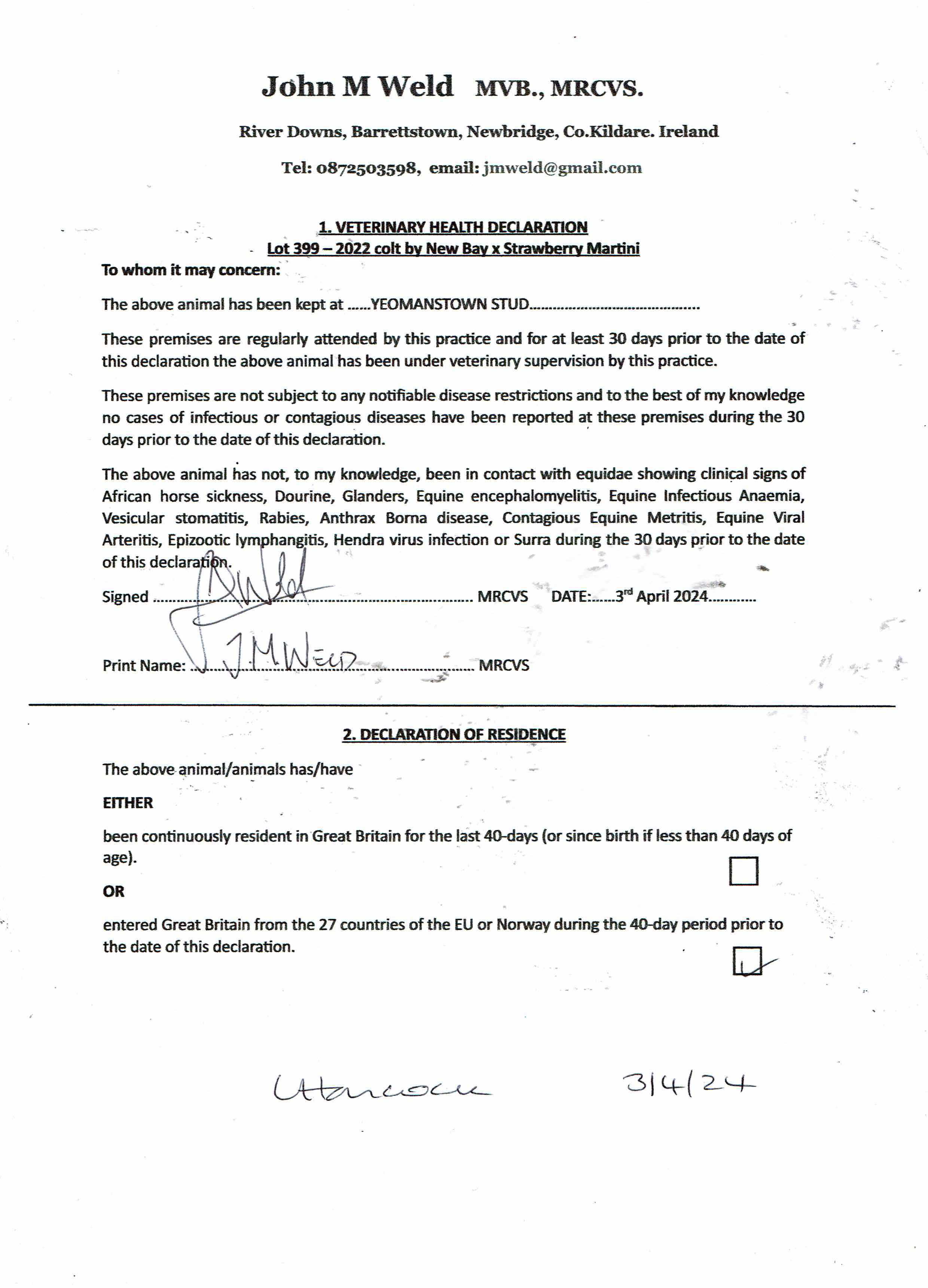 December Mare Sale 2023 lot 2005 Orange Martini (GB) (F. by Roaring Lion (USA)), Tweenhills Farm & Stud=>JS Bloodstock 3,000 gns