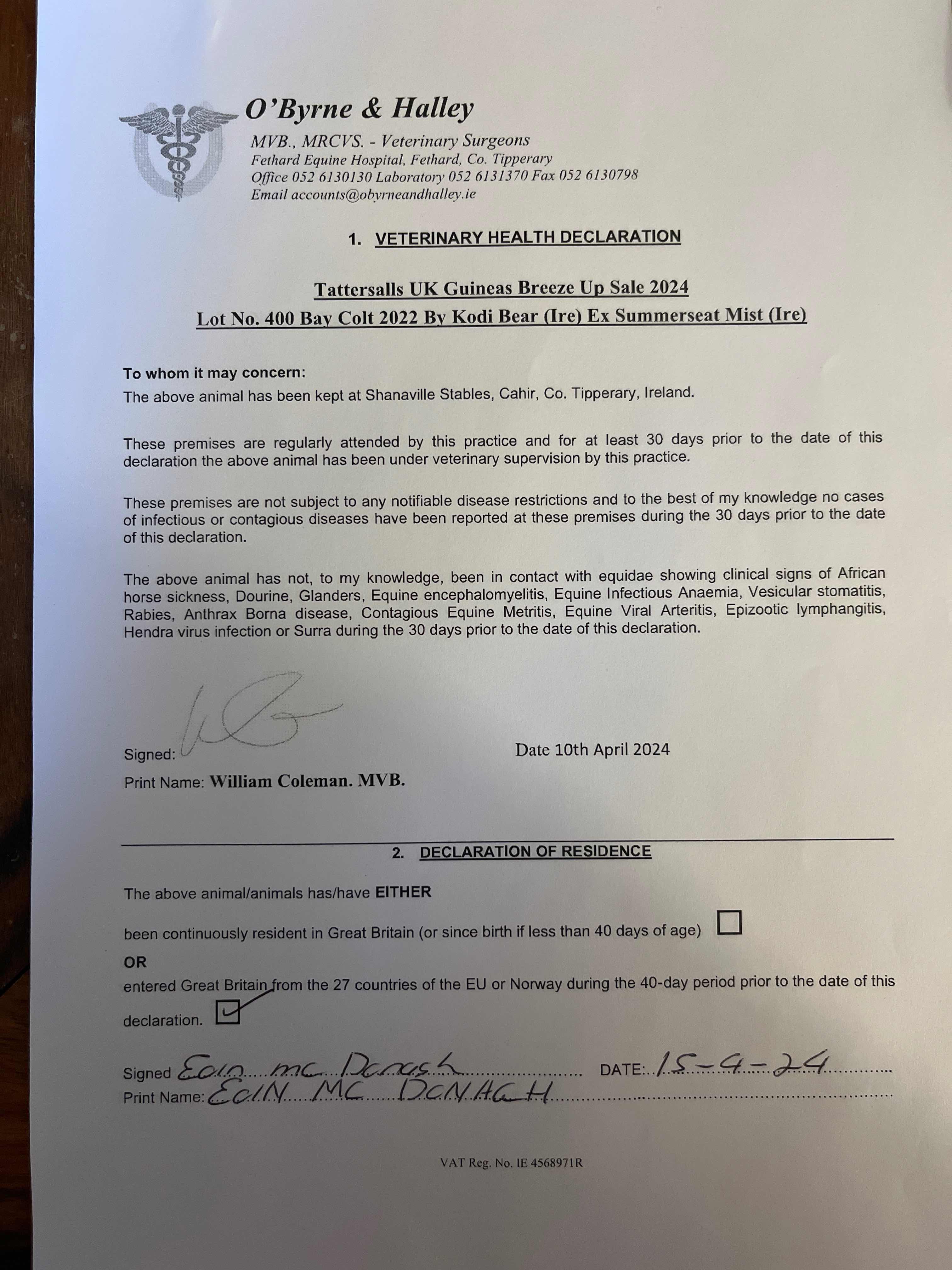 September Yearling Sale 2023 lot 464, Ballintry Stud=>Shanaville Stables €20,000