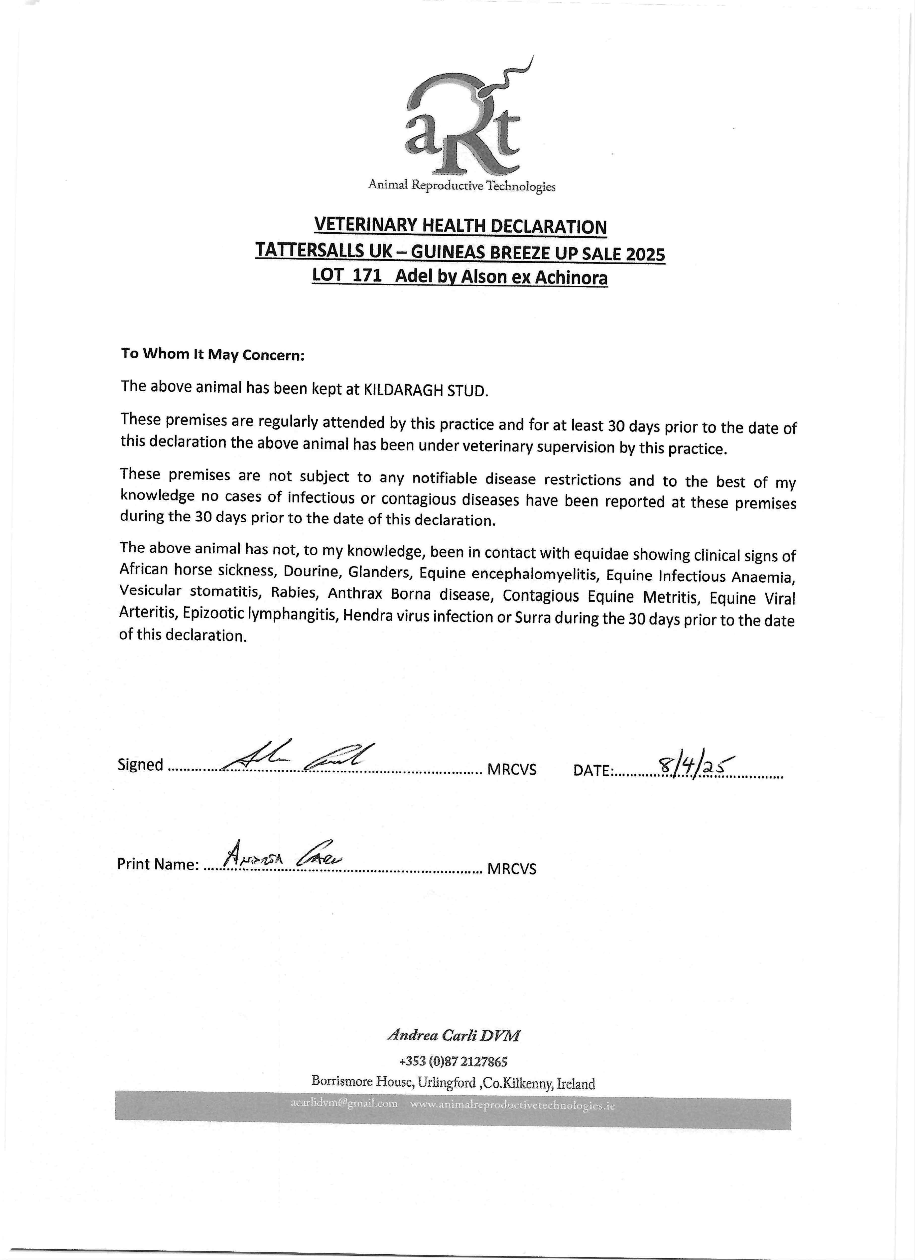 December Mare Sale 2022 lot 1888 Axana (GER) (M. by Soldier Hollow (GB)), Voute Sales Ltd. (Agent)=>Vendor 150,000 gns