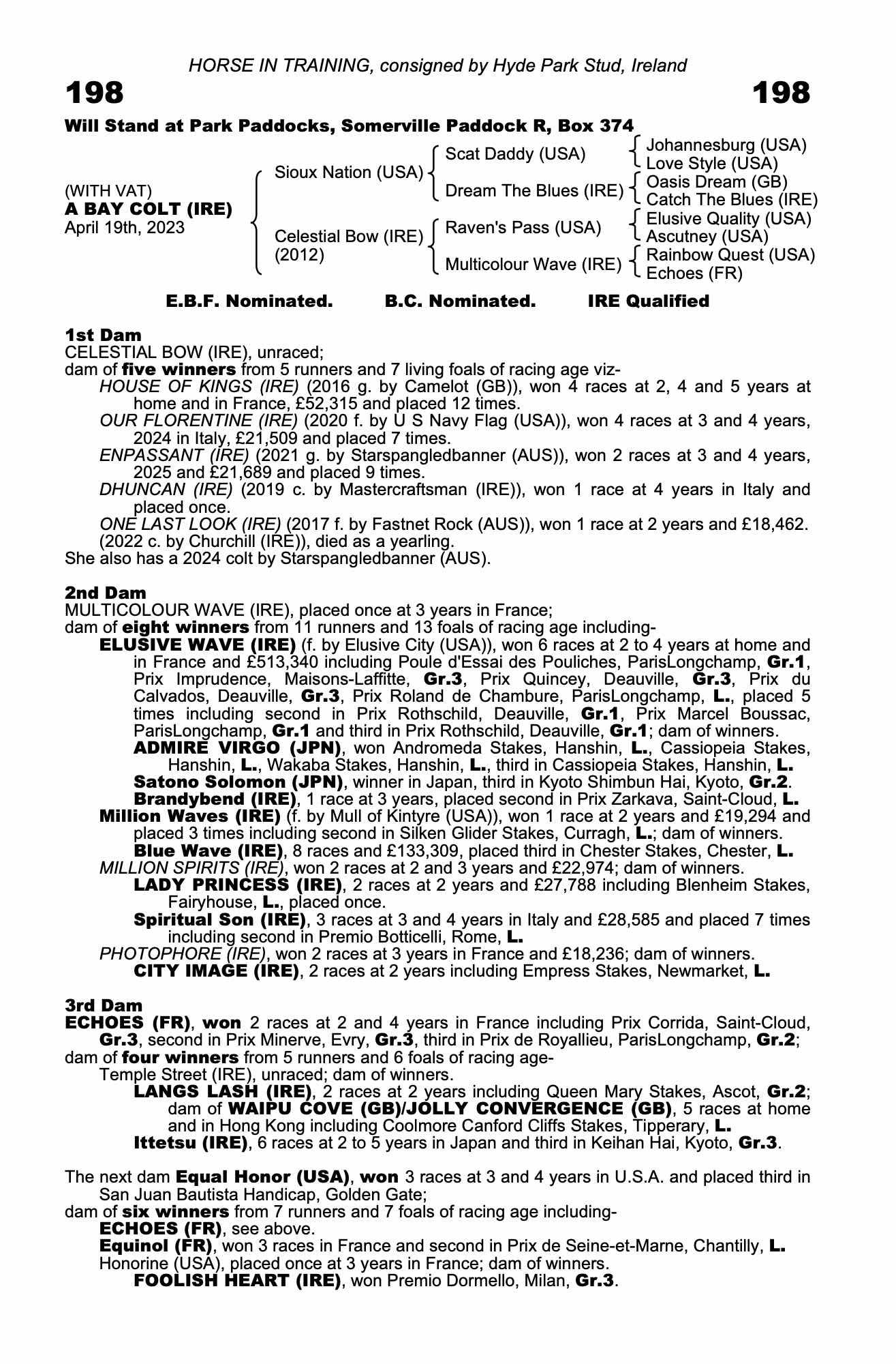 Consignor: Hyde Park Stud, Ireland