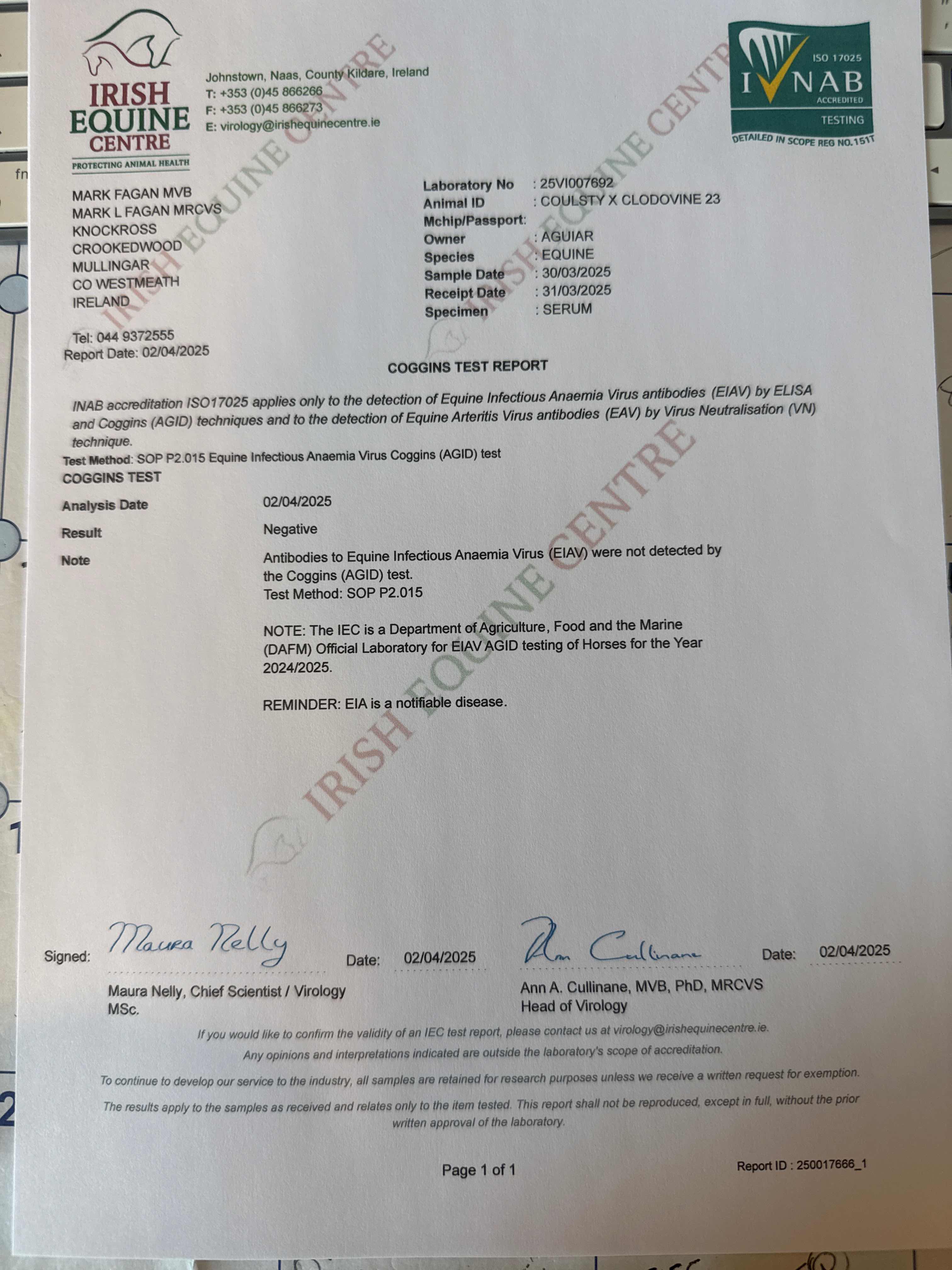 Consignor: Kildallan Farm, Ireland