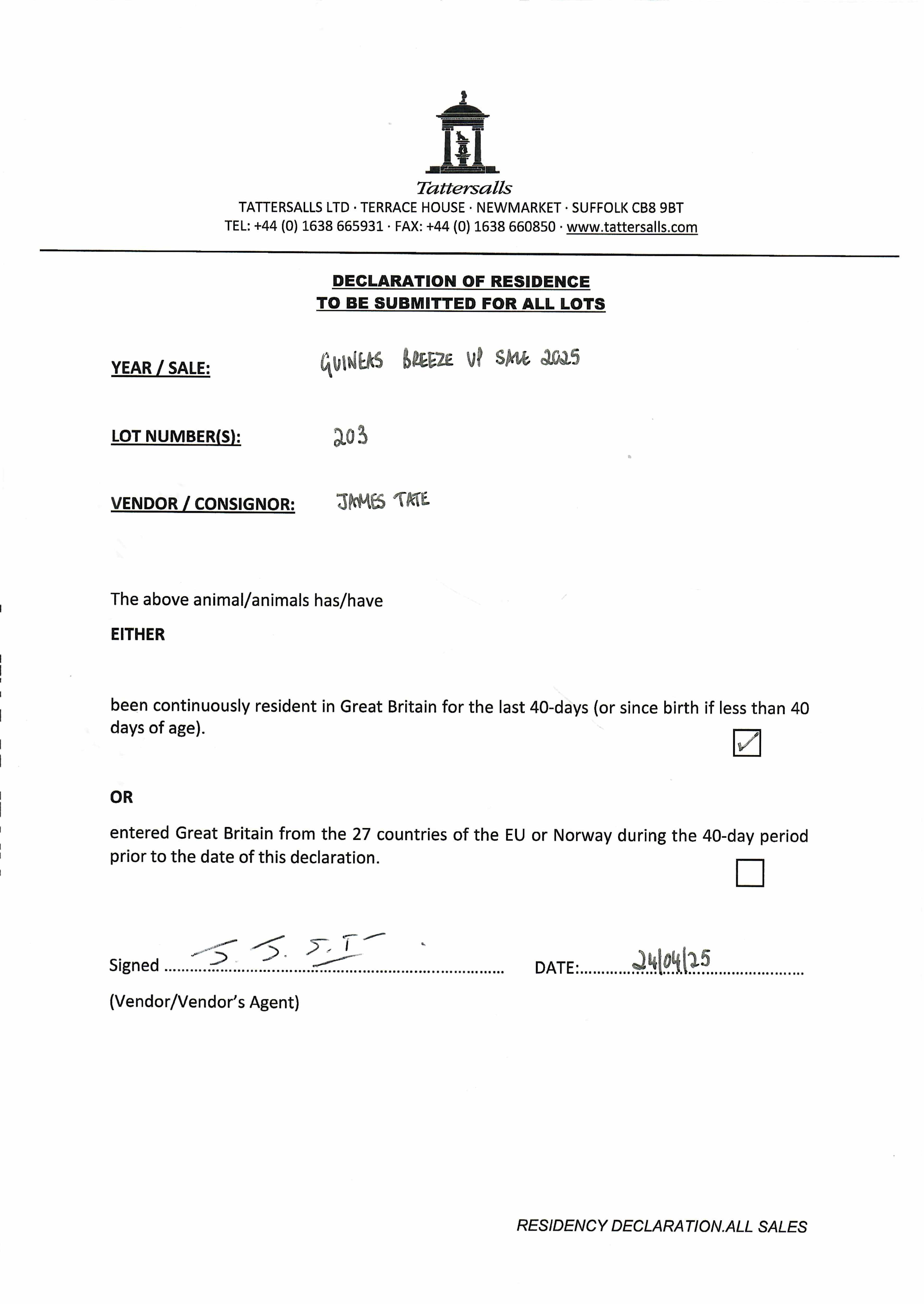 Online Sale - 2nd July 2025 lot 1 Above All Else (GB) (F. by Far Above (IRE)), Jamesfield Stables (J. Tate)=>Lot Not Sold 900 gns