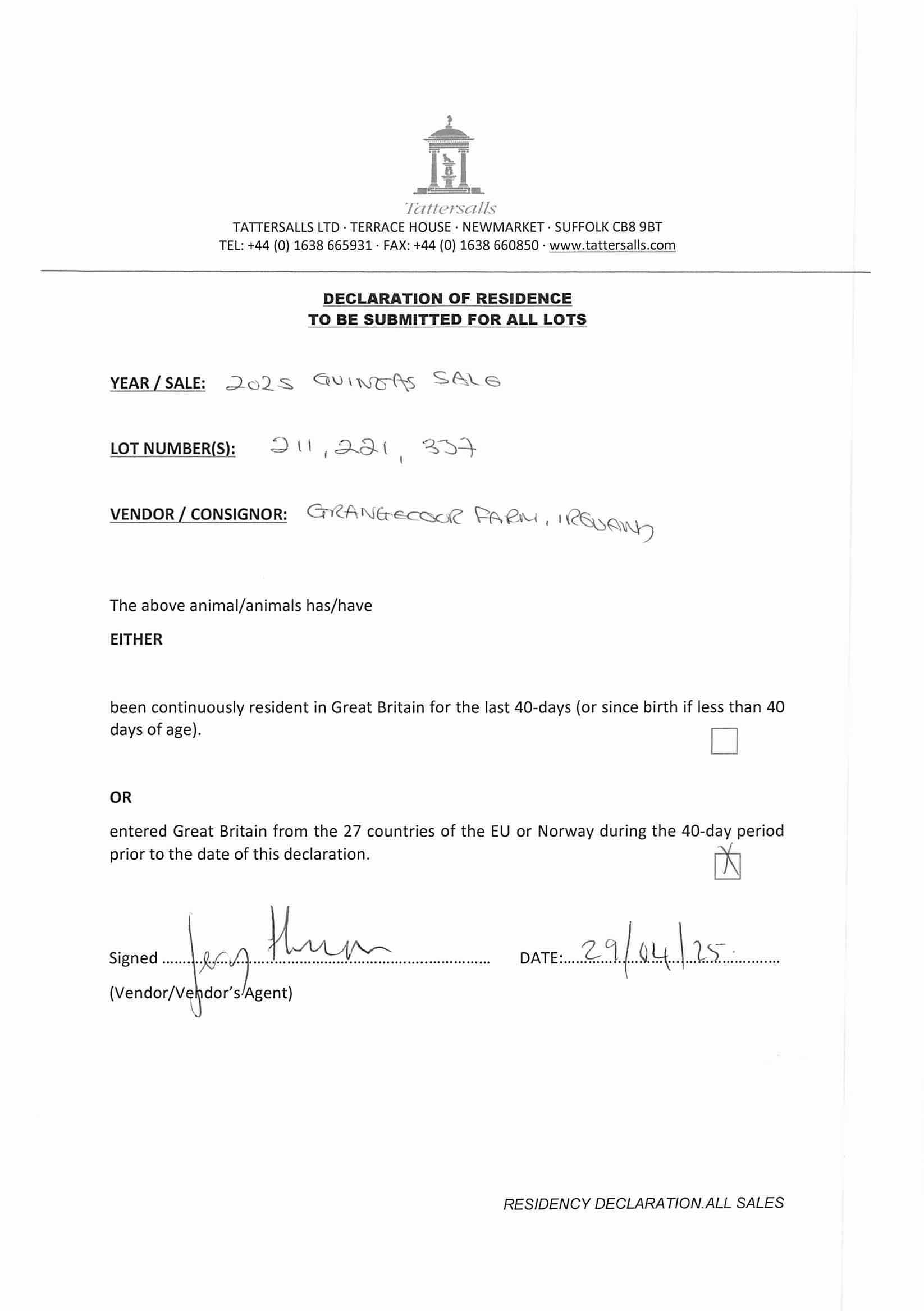 Consignor: Grangecoor Farm, Ireland