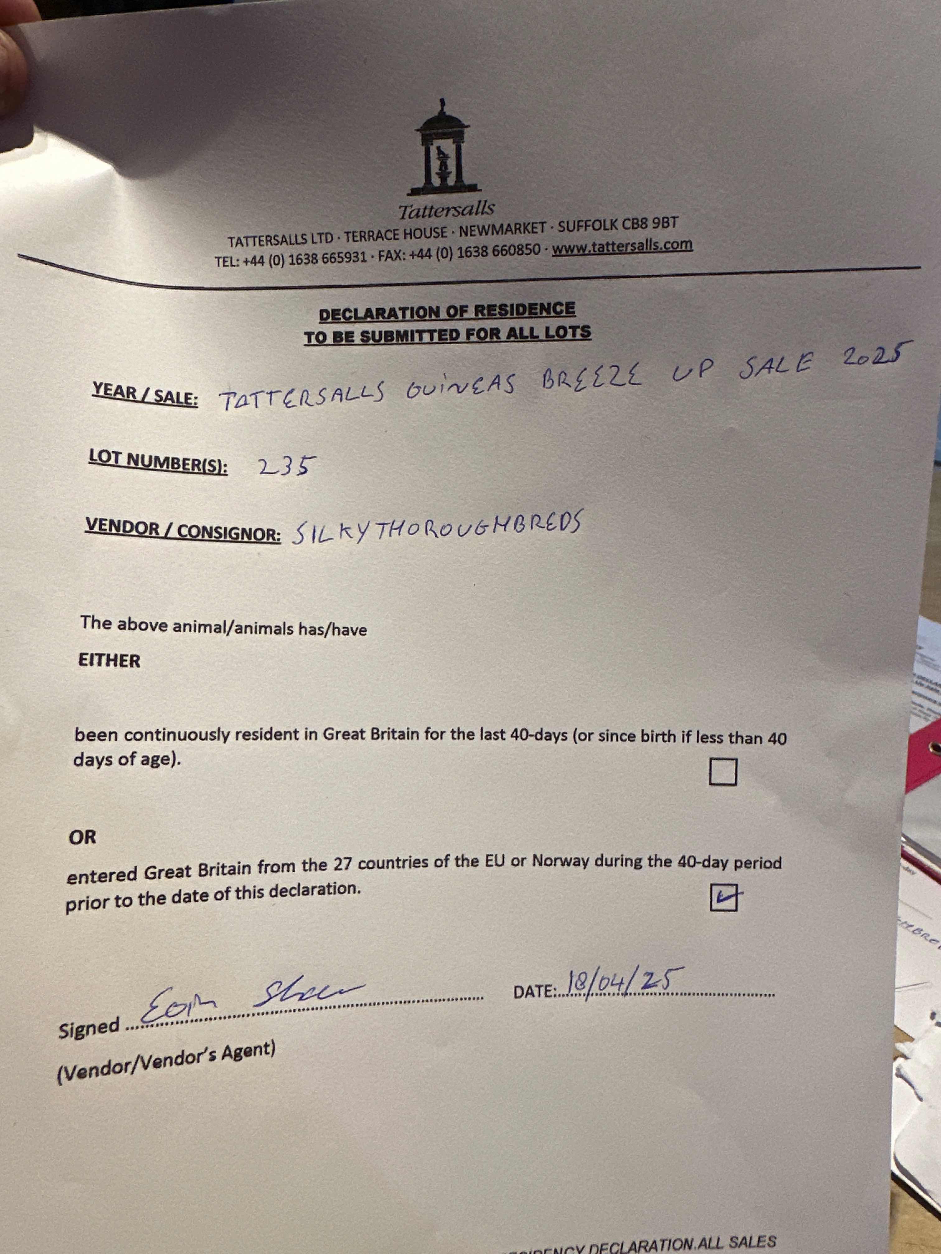 Consignor: Silky Thoroughbreds, Ireland