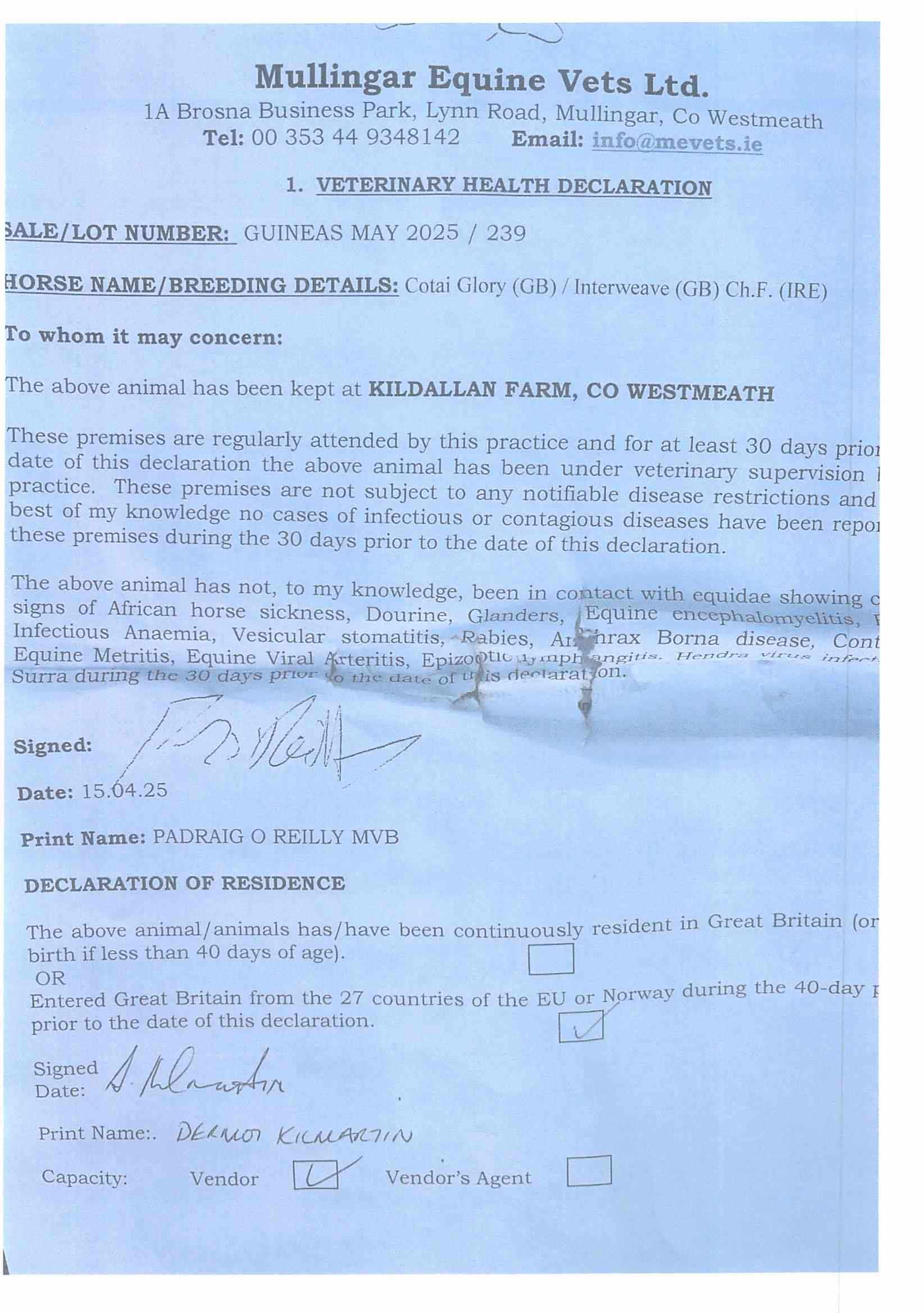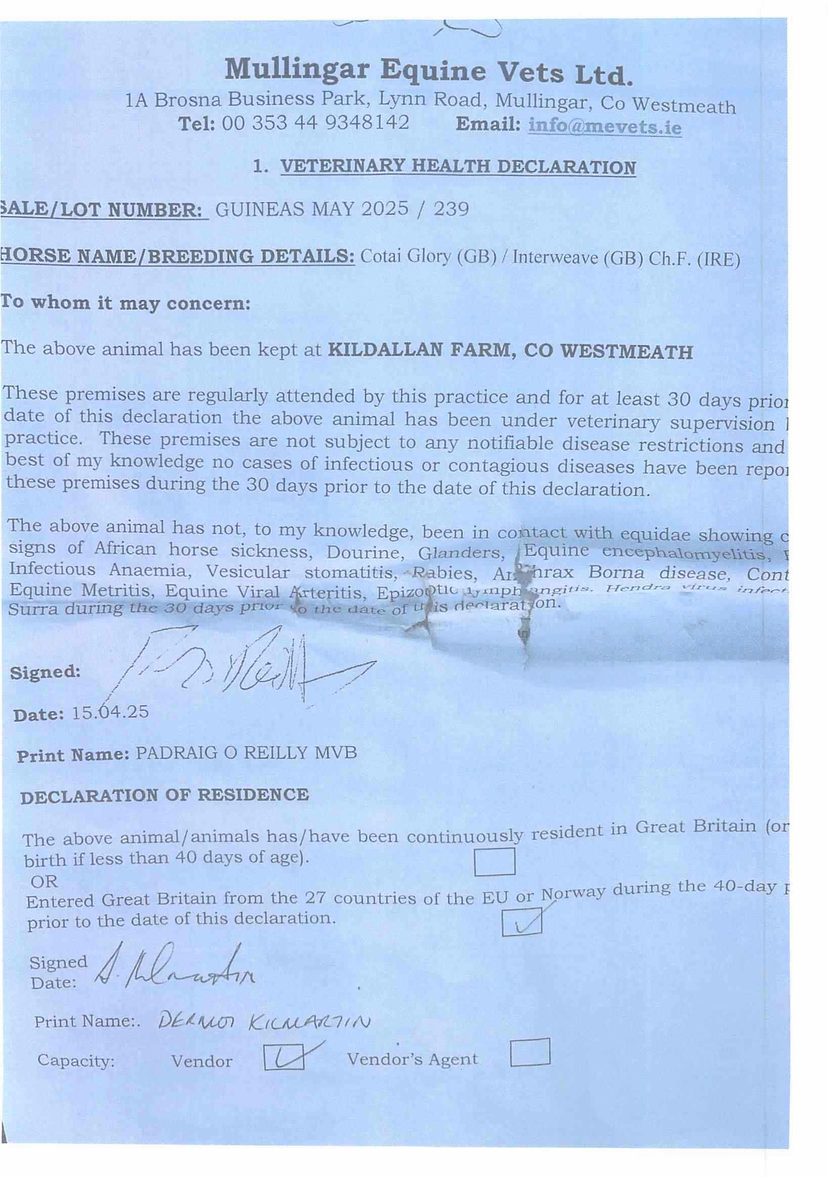 Sapphire Sale 2024 lot 897, Shinglis Stud=>Vendor €4,000