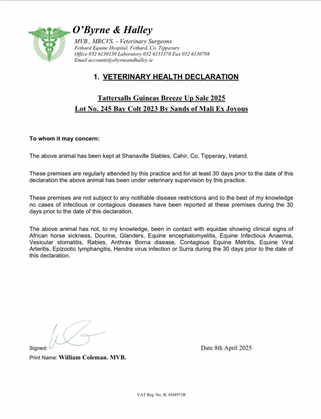Consignor: Shanaville Stables, Ireland