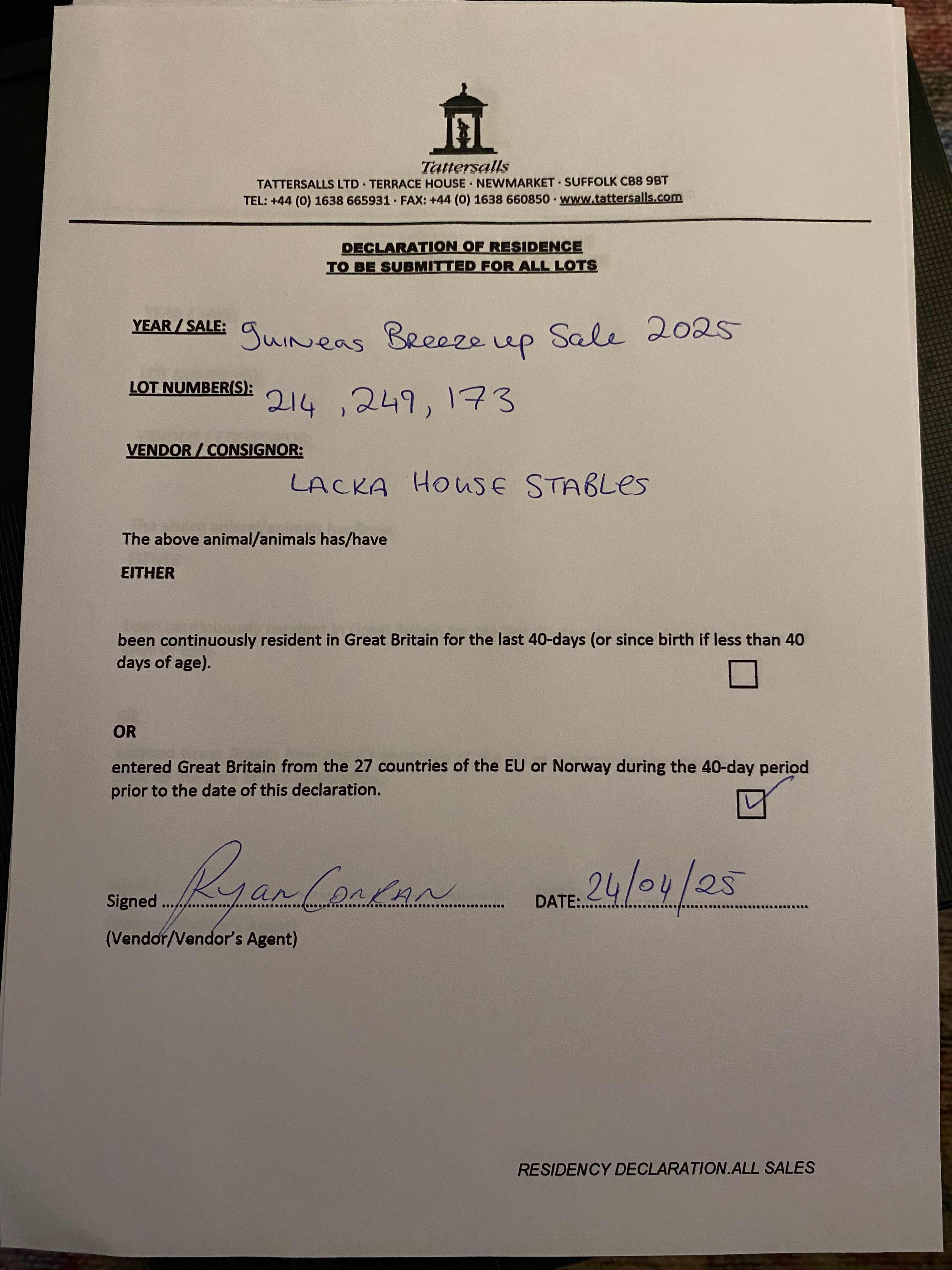 Online Sale - 23rd October 2025 lot 157, Ed Dunlop Racing Ltd.=>Lot Not Sold 15,500 gns