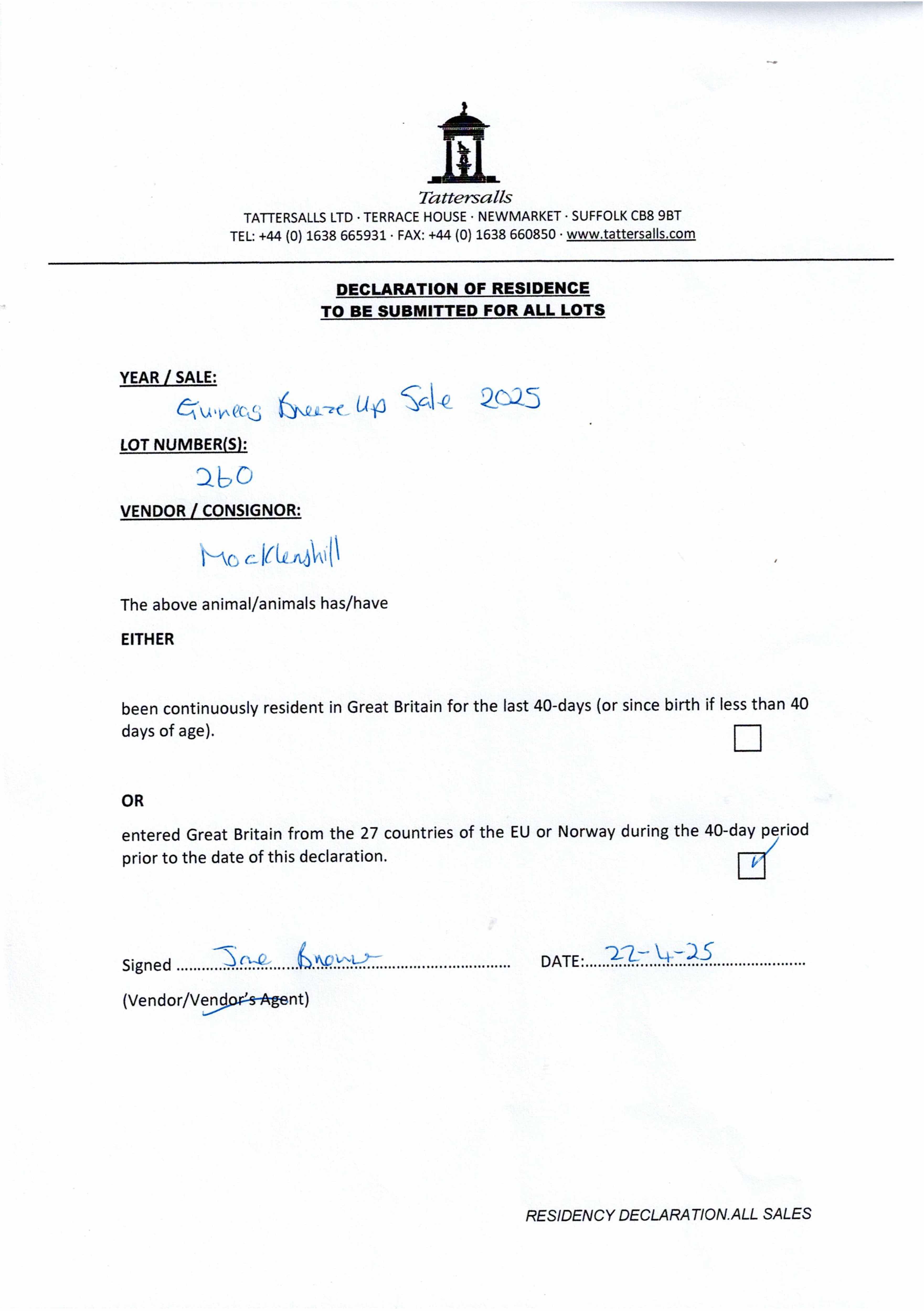 Consignor: Mocklershill, Ireland