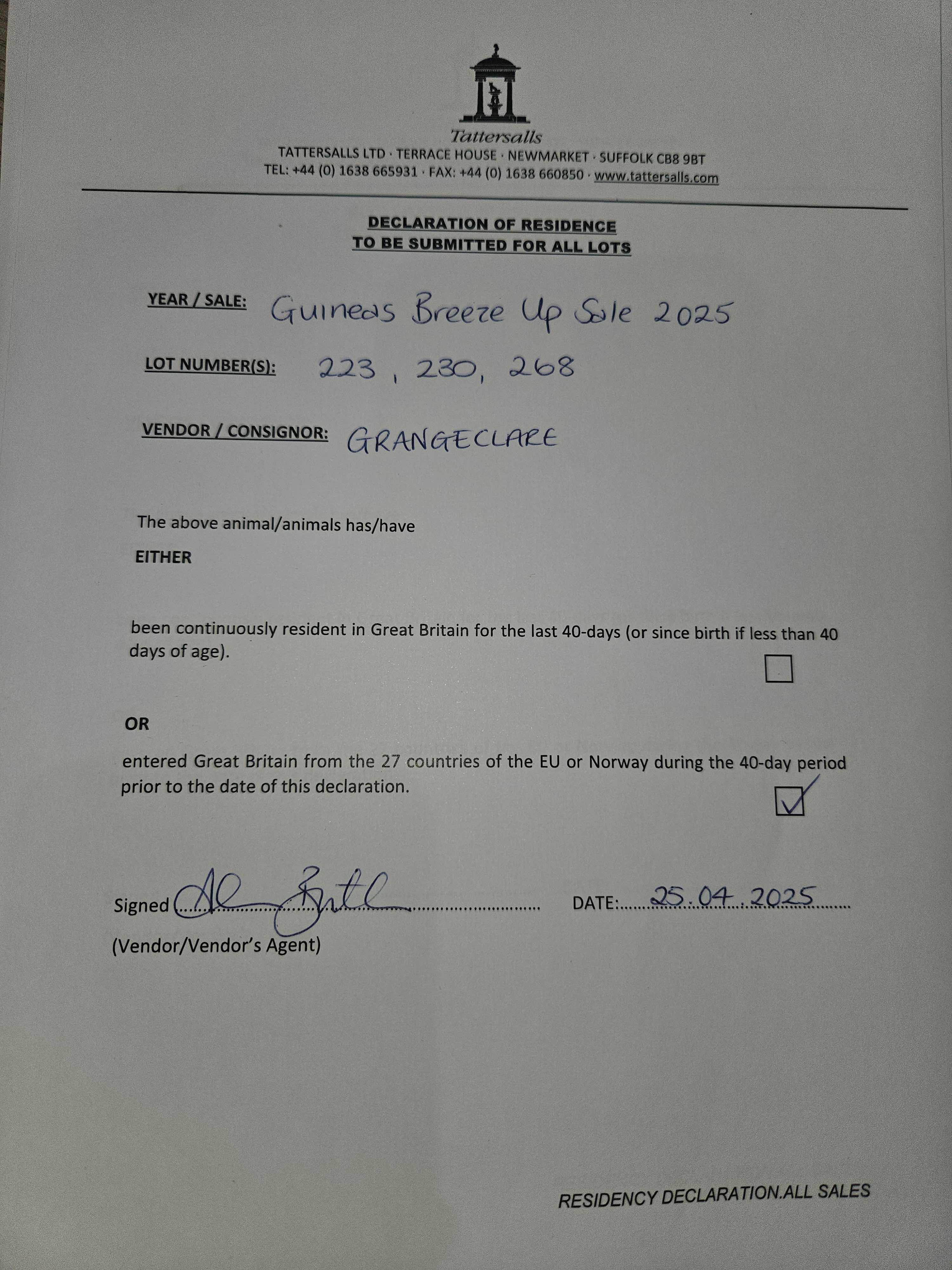 September Sale 2024 lot 76 Dubai Victory (IRE) (F. by Invincible Army (IRE)), Jamesfield Stables (J. Tate)=>Lot Not Sold
