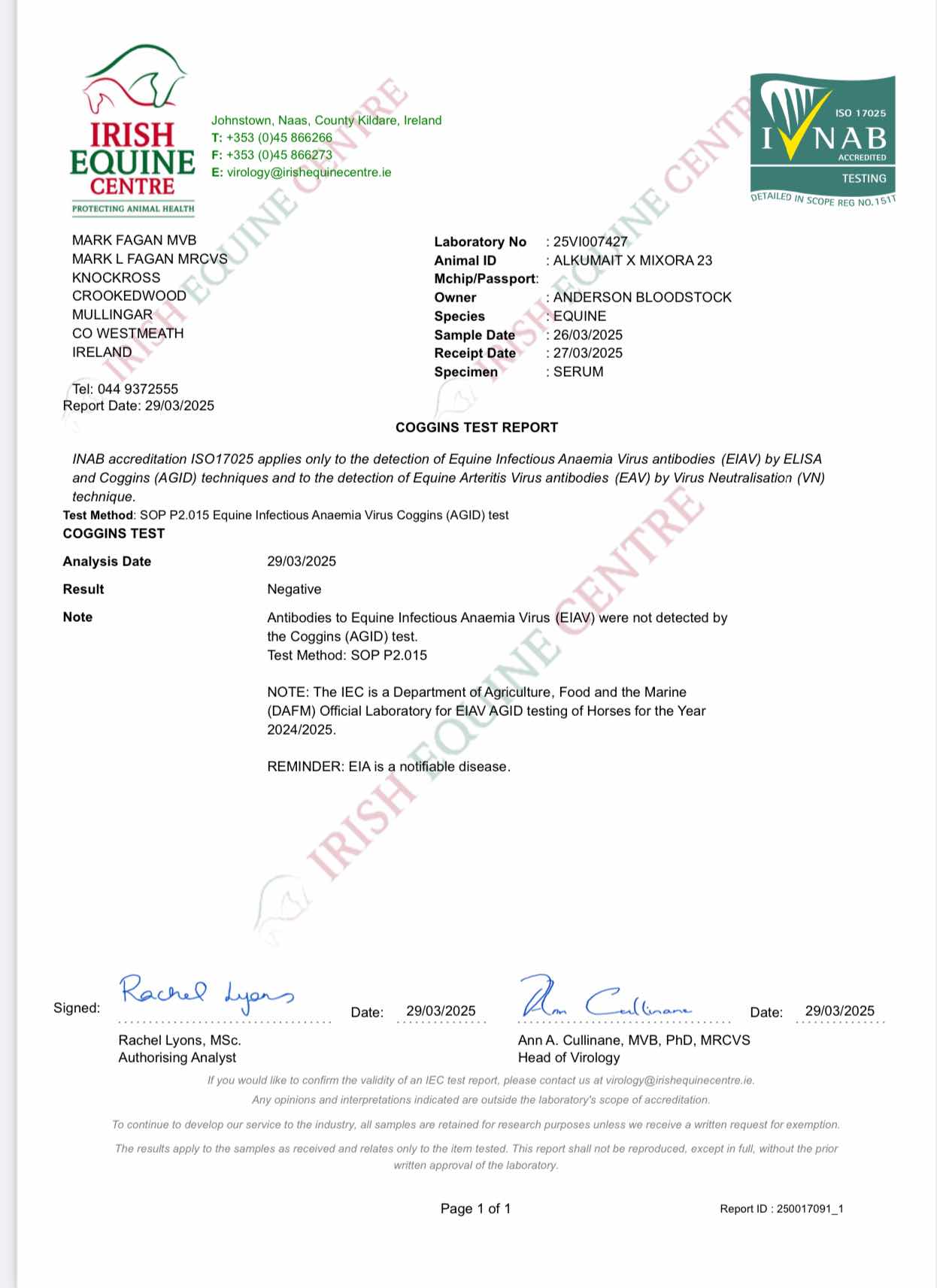 Consignor: Anderson Bloodstock, Ireland