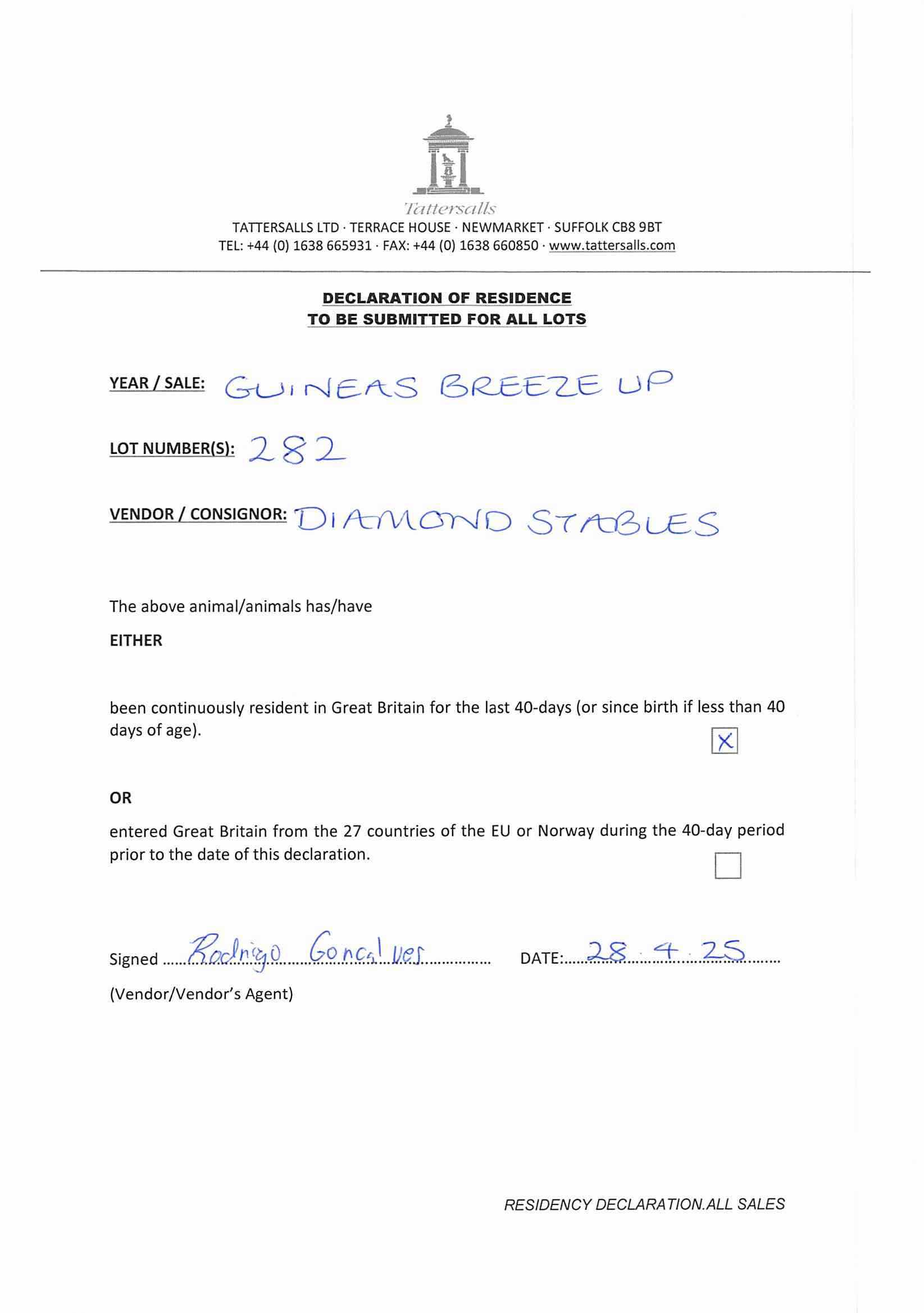 Consignor: Diamond Stables, Ireland