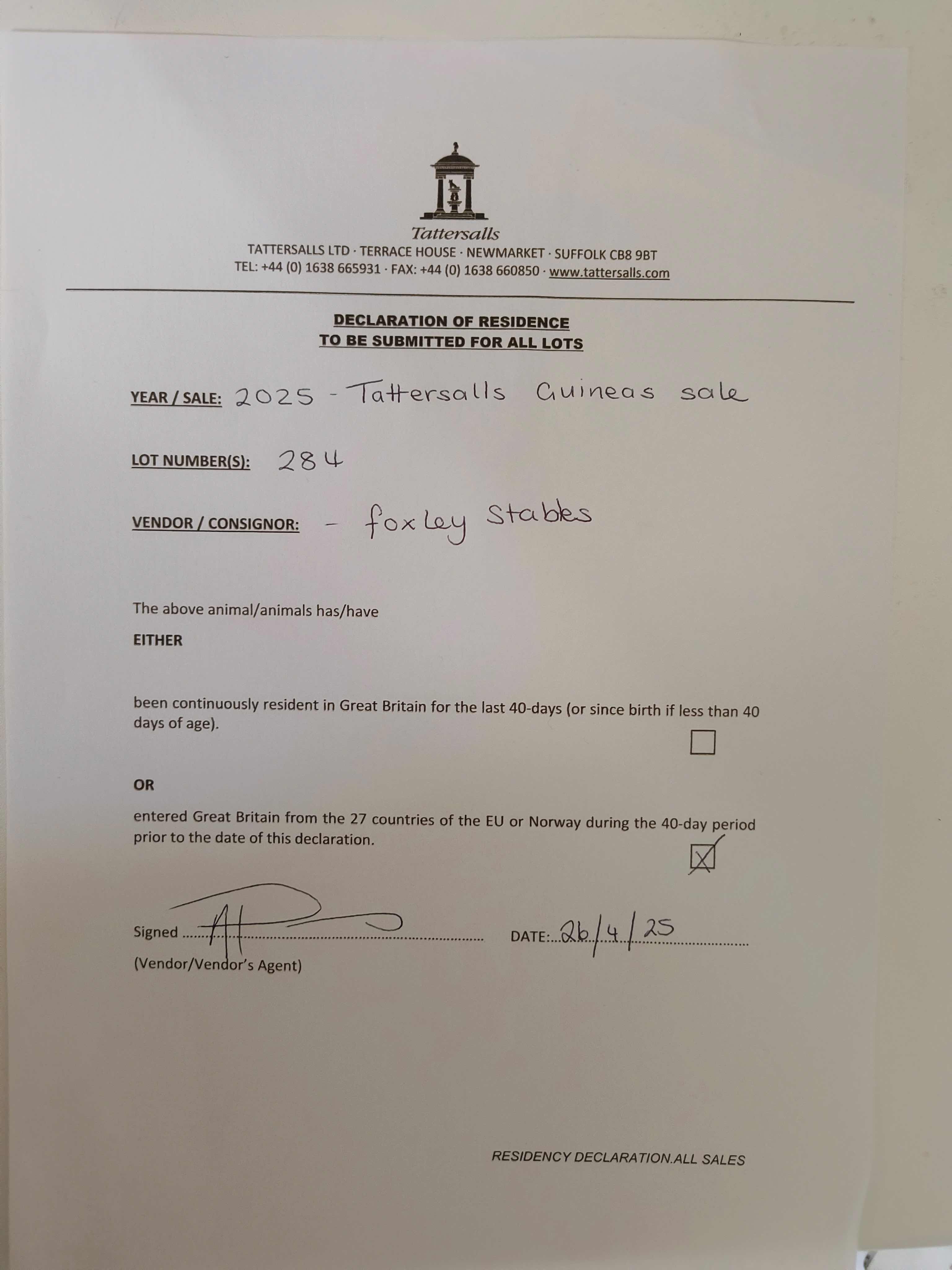 Consignor: Foxley Stables, Ireland (A. Parsons)