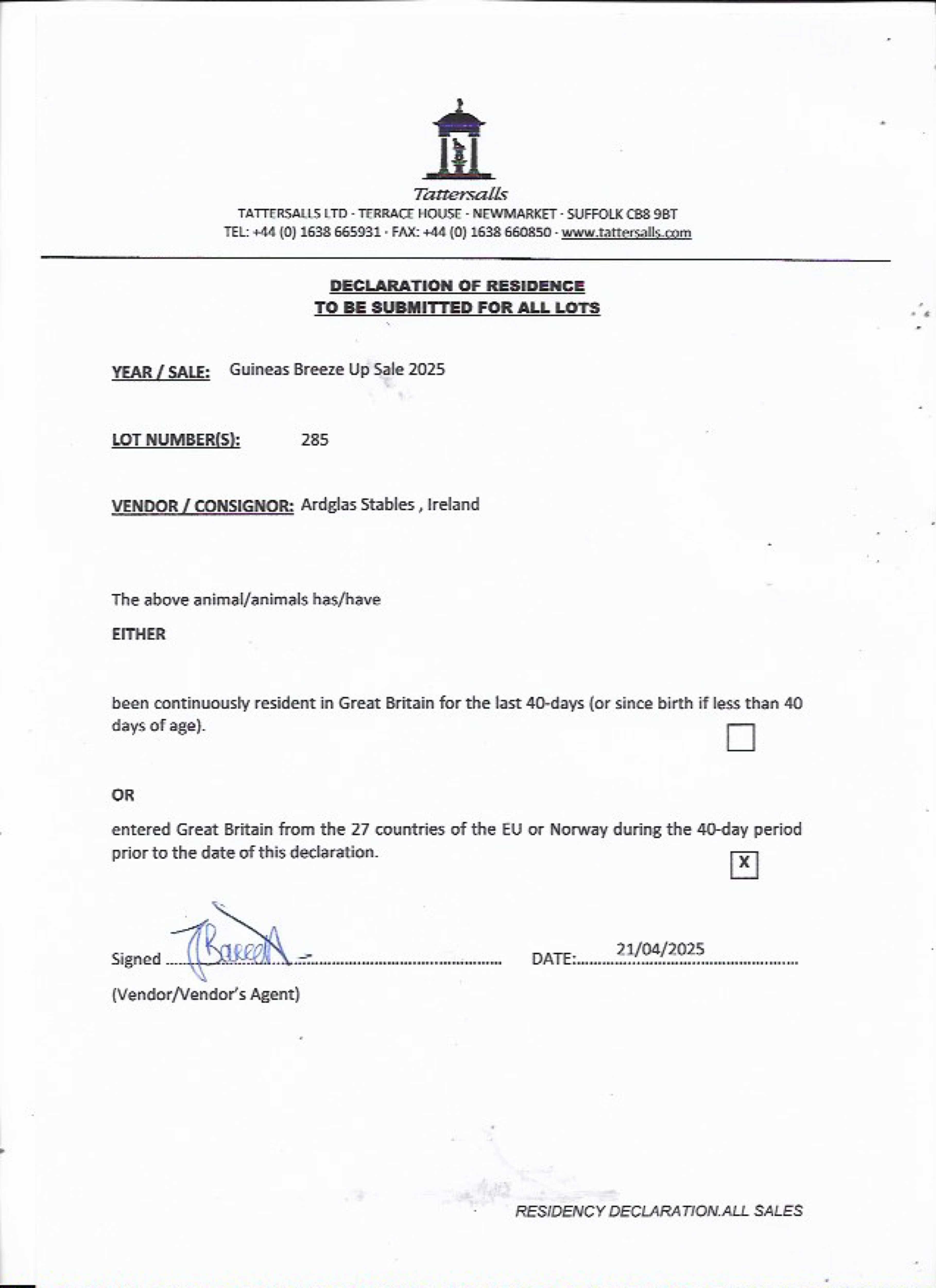Consignor: Ardglas Stables, Ireland