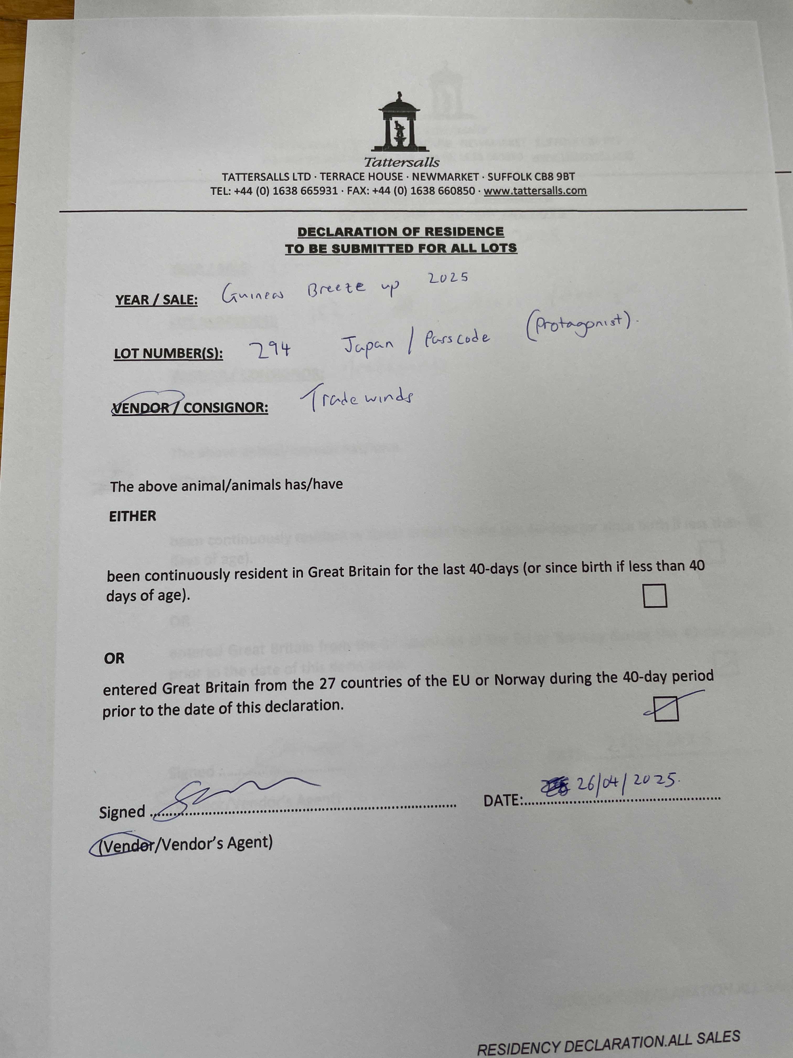 Consignor: Tradewinds Stud, Ireland
