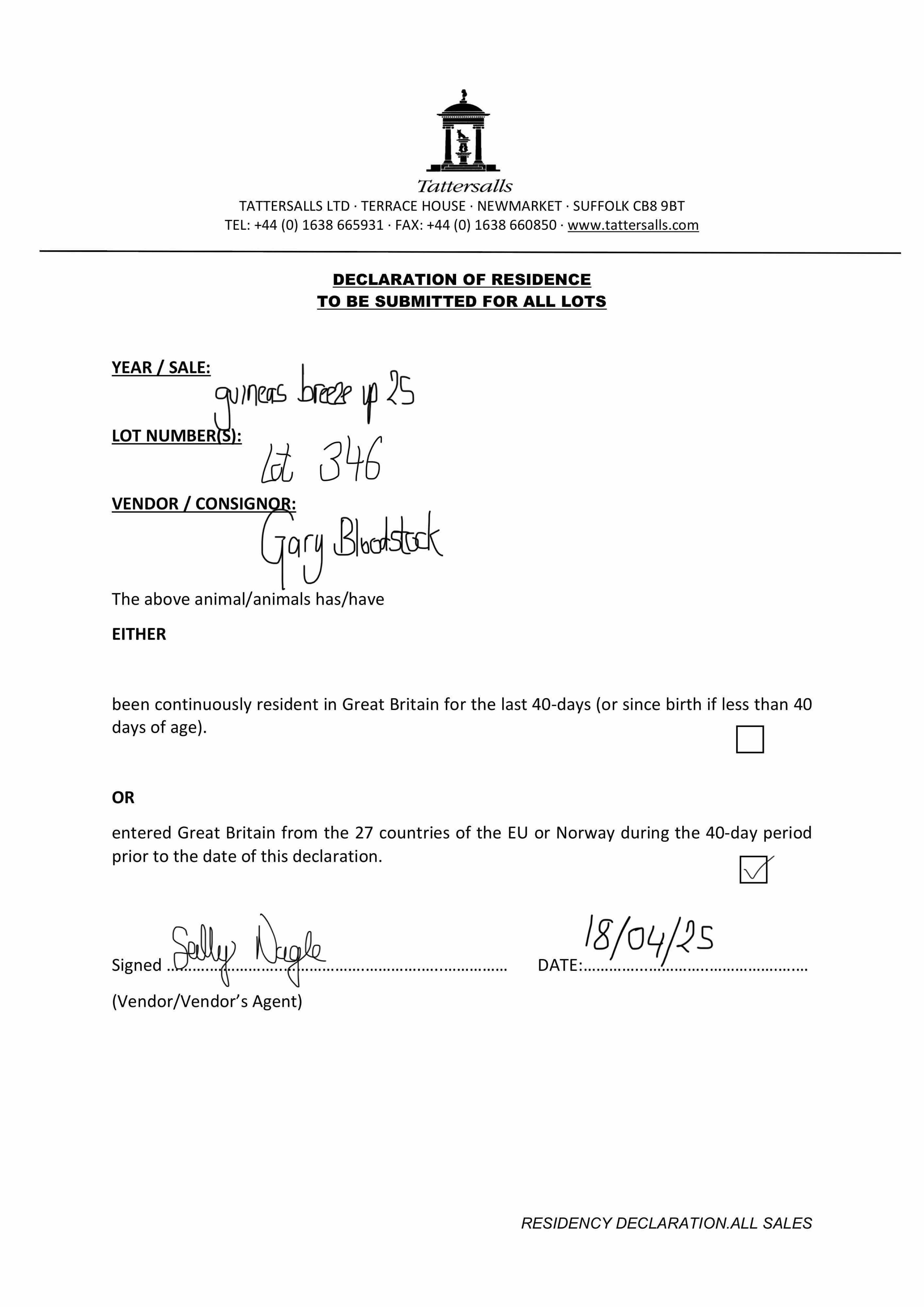 Consignor: Gary Bloodstock, Ireland