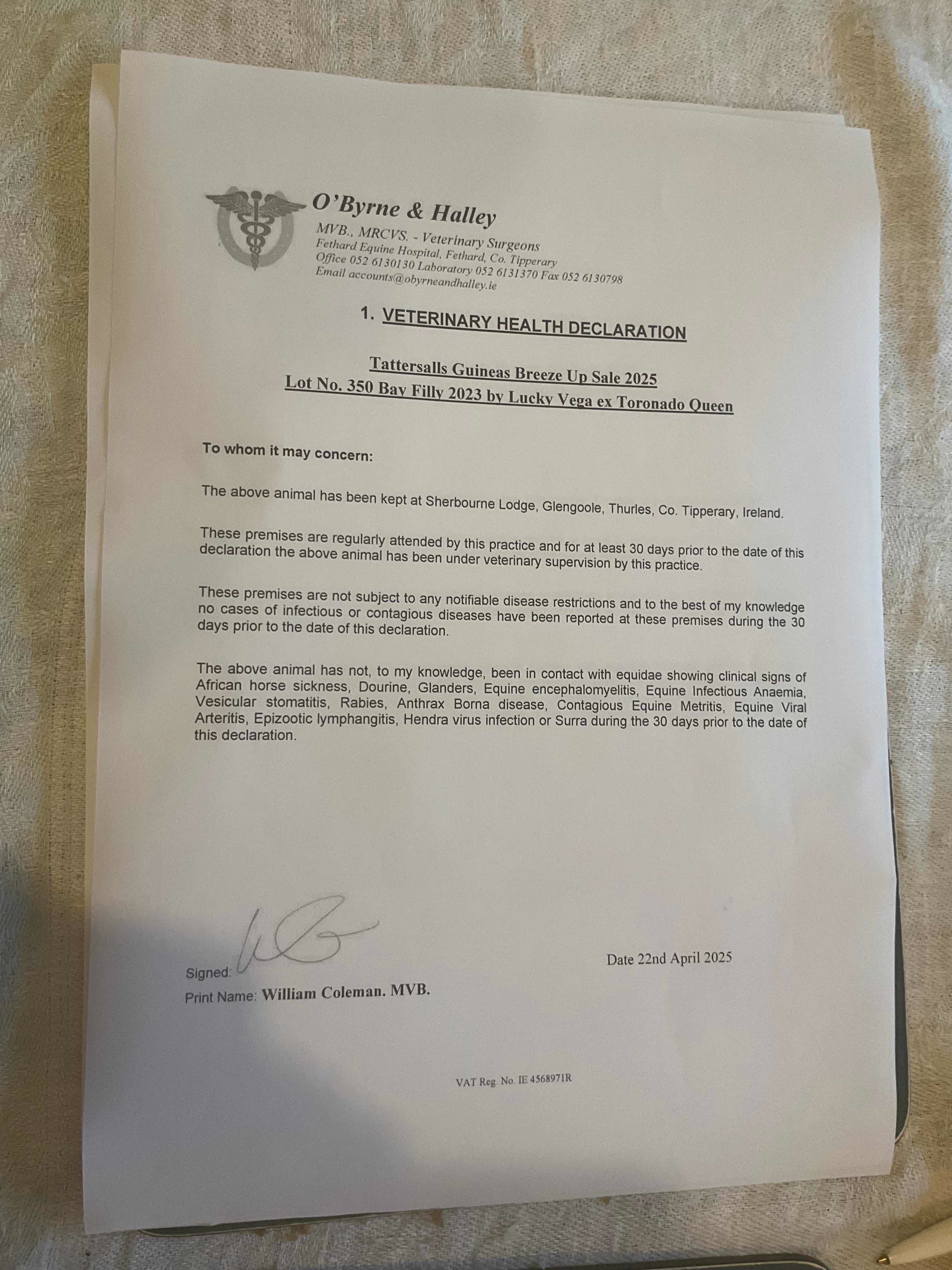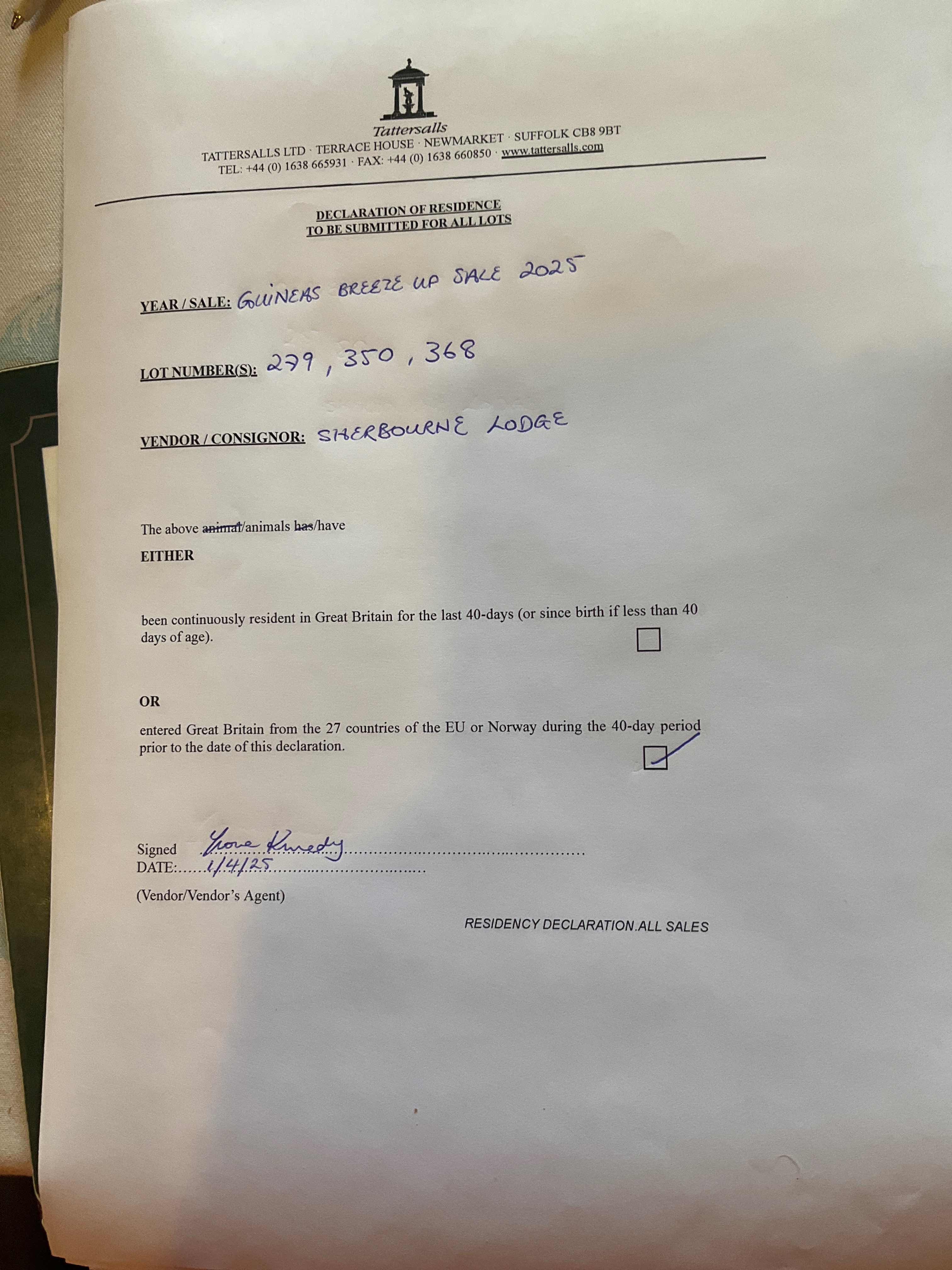 Consignor: Sherbourne Lodge, Ireland