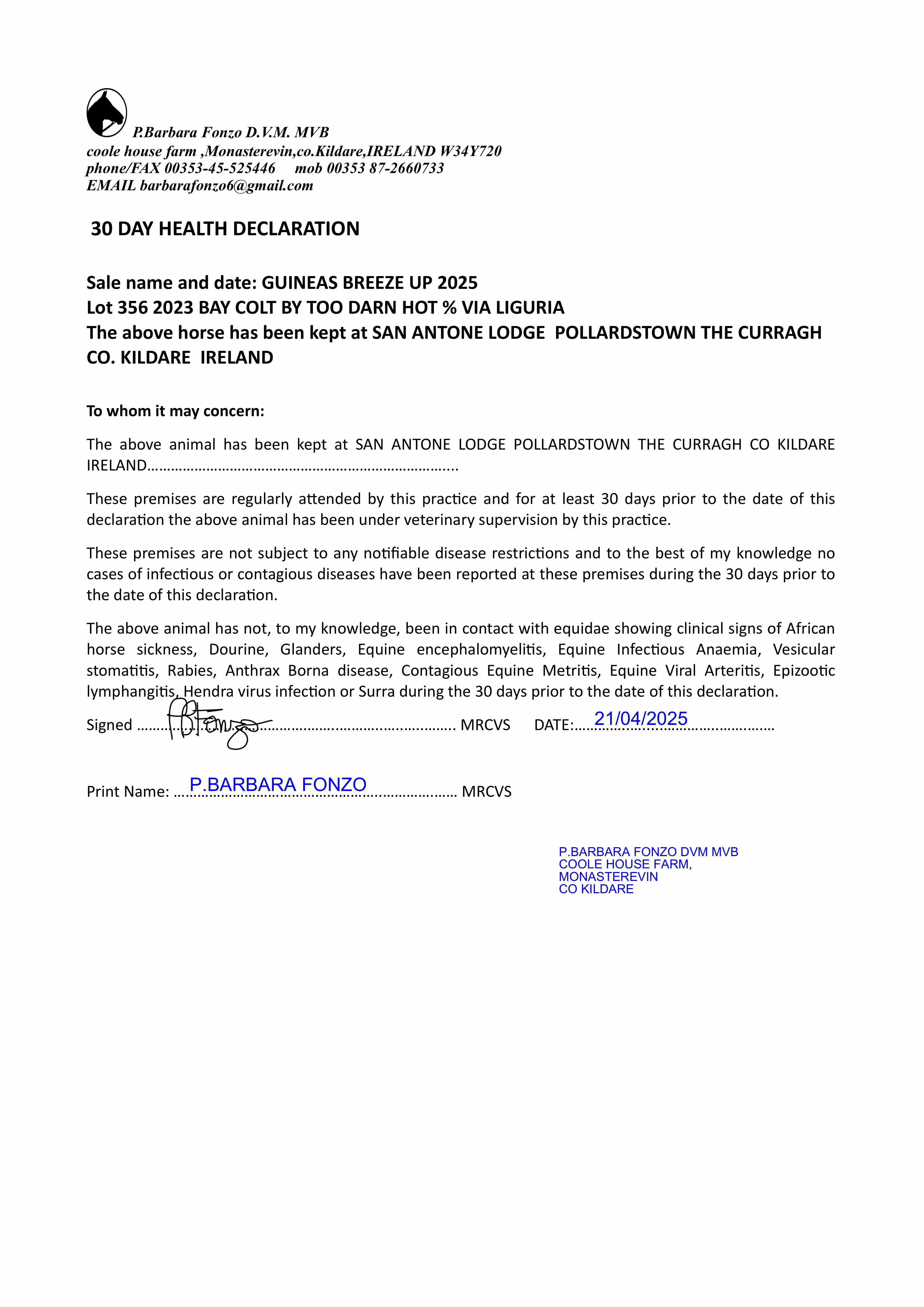 September Yearling Sale Part II 2025 lot 584 F. by Gleneagles (IRE) 2024, Clonmult Farm (Agent)=>Jacob Pritchard Webb €12,000