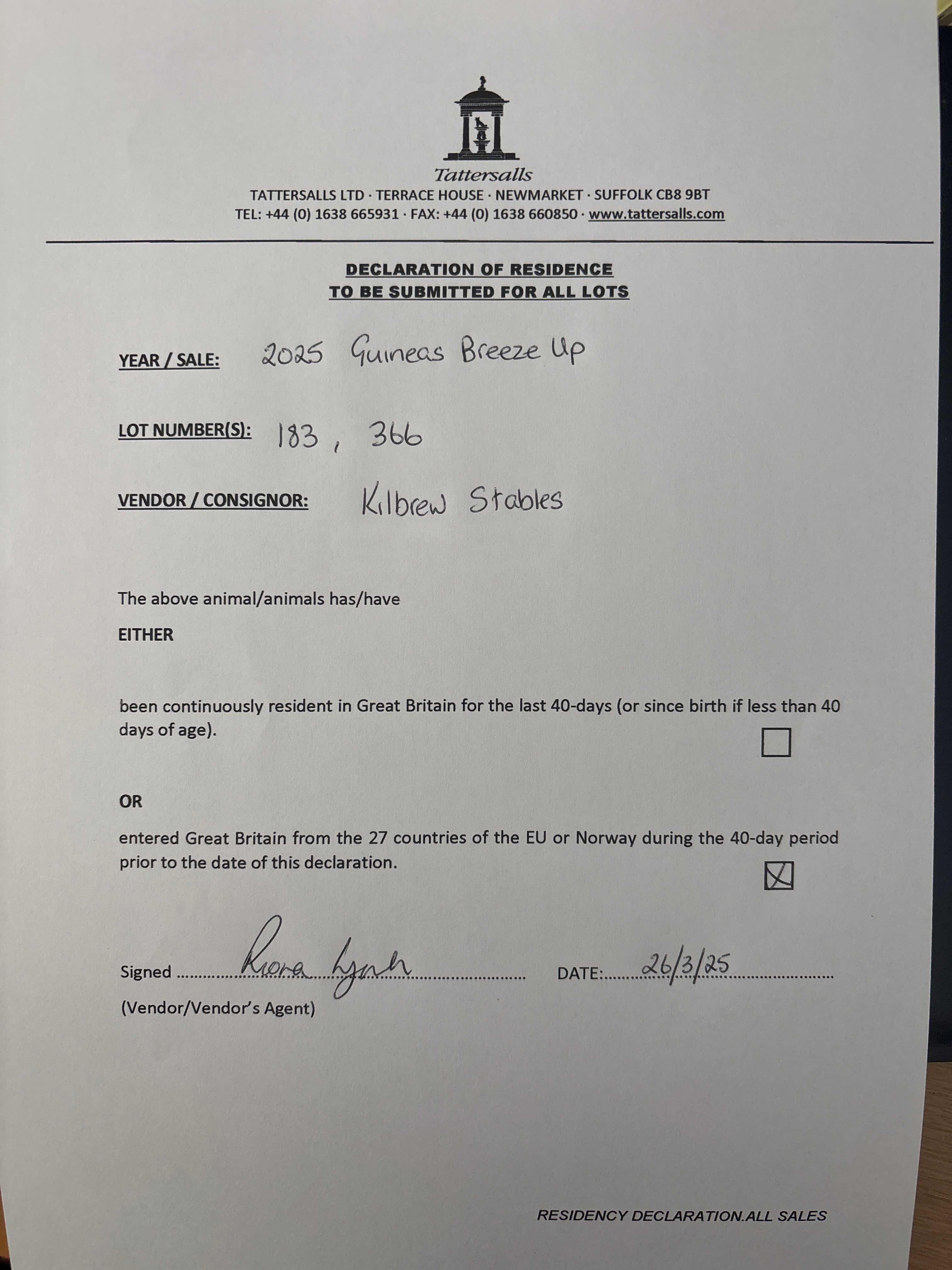 October Yearling Sale, Book 2 2025 lot 1347 F. by Starspangledbanner (AUS) 2024, Lackagh Springs Stud, Ireland=>Houldsworth / Insole / Thurloe 135,000 gns