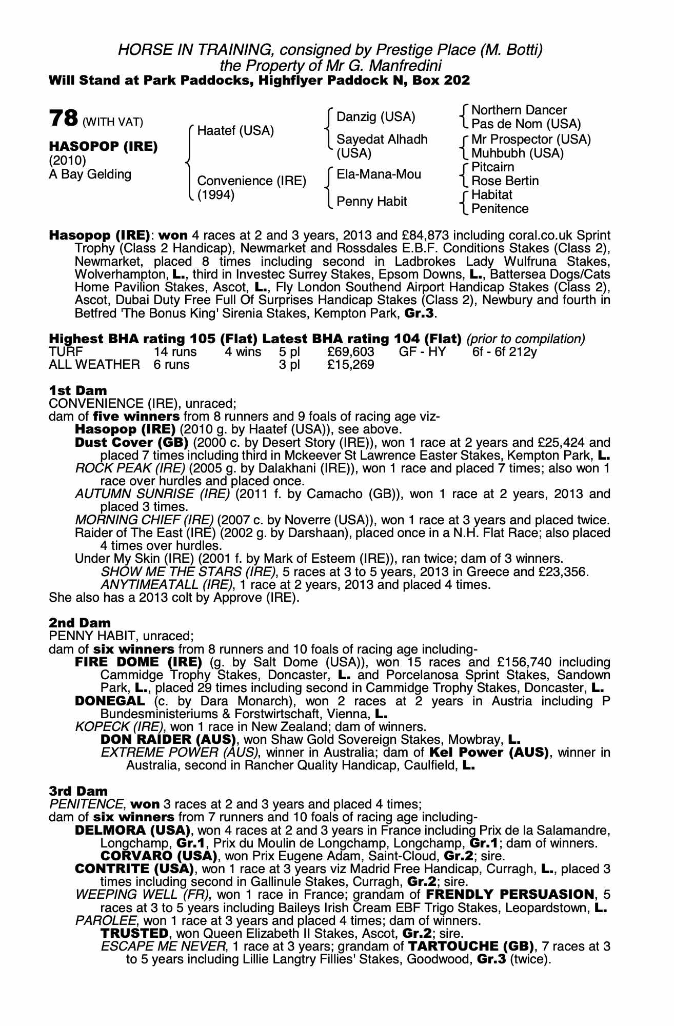 February Sale 2015 lot 222, Prestige Place (M. Botti)=>Horse France Ireland 11,000 gns