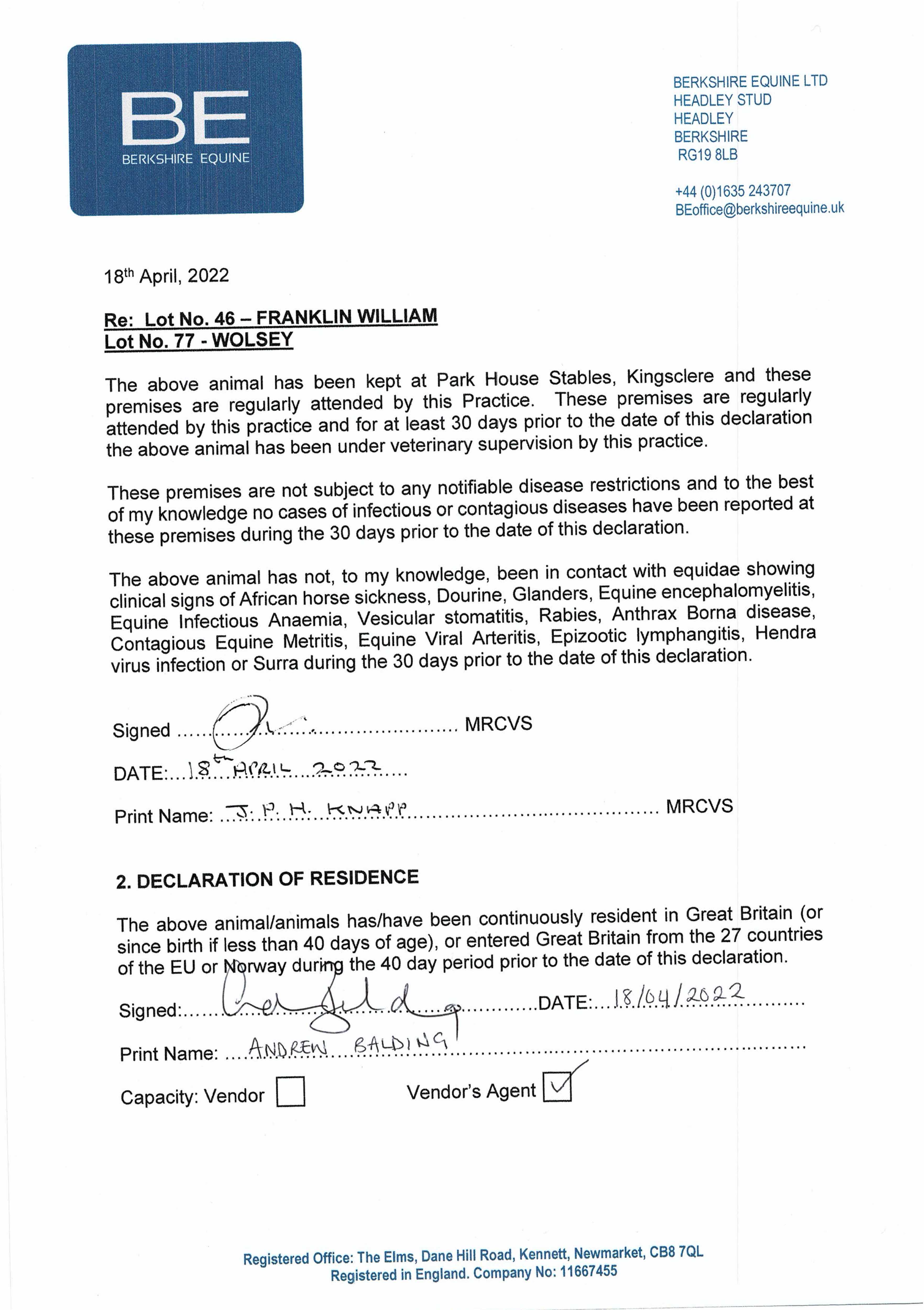 Consignor: Jamie Railton (Agent)