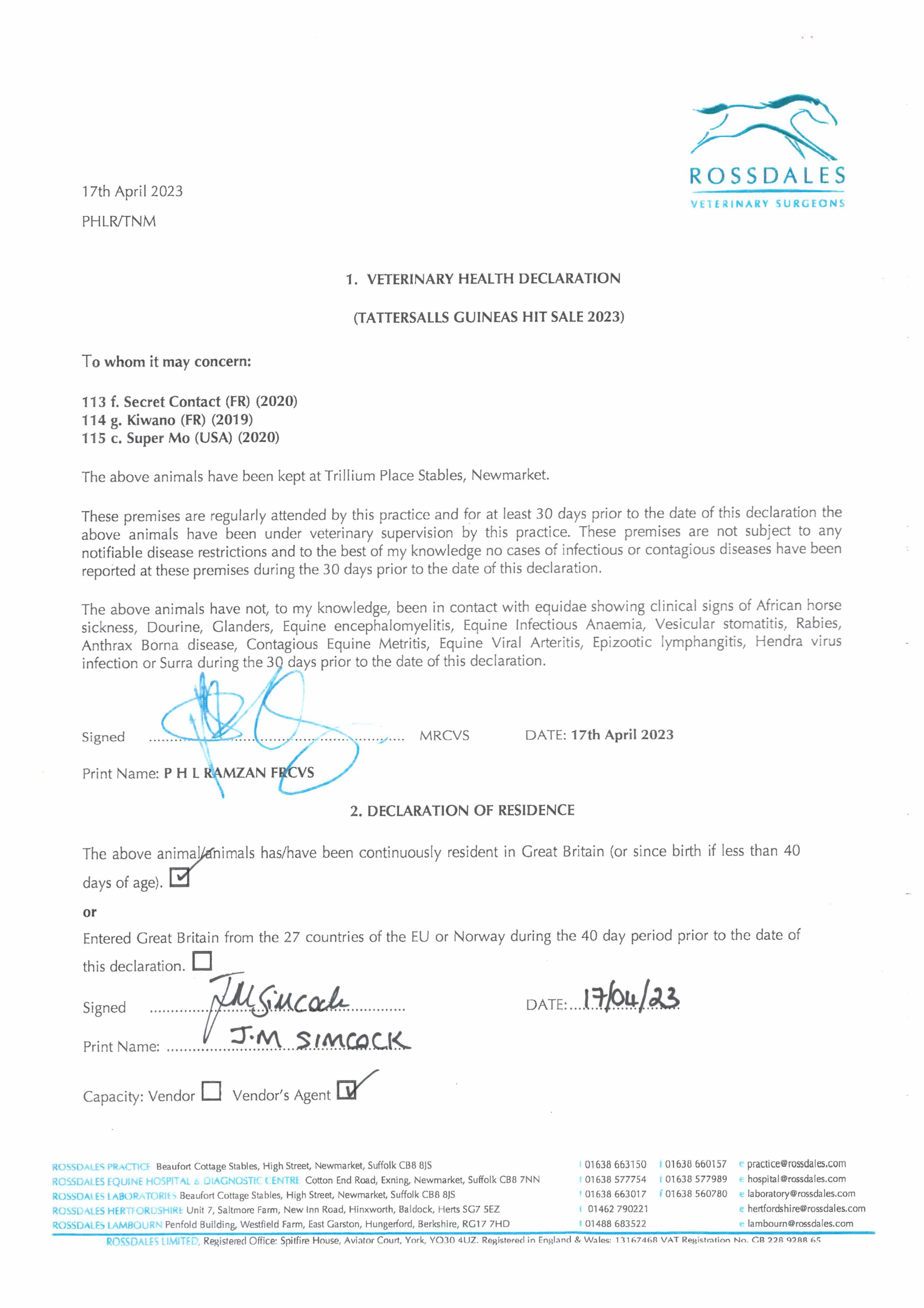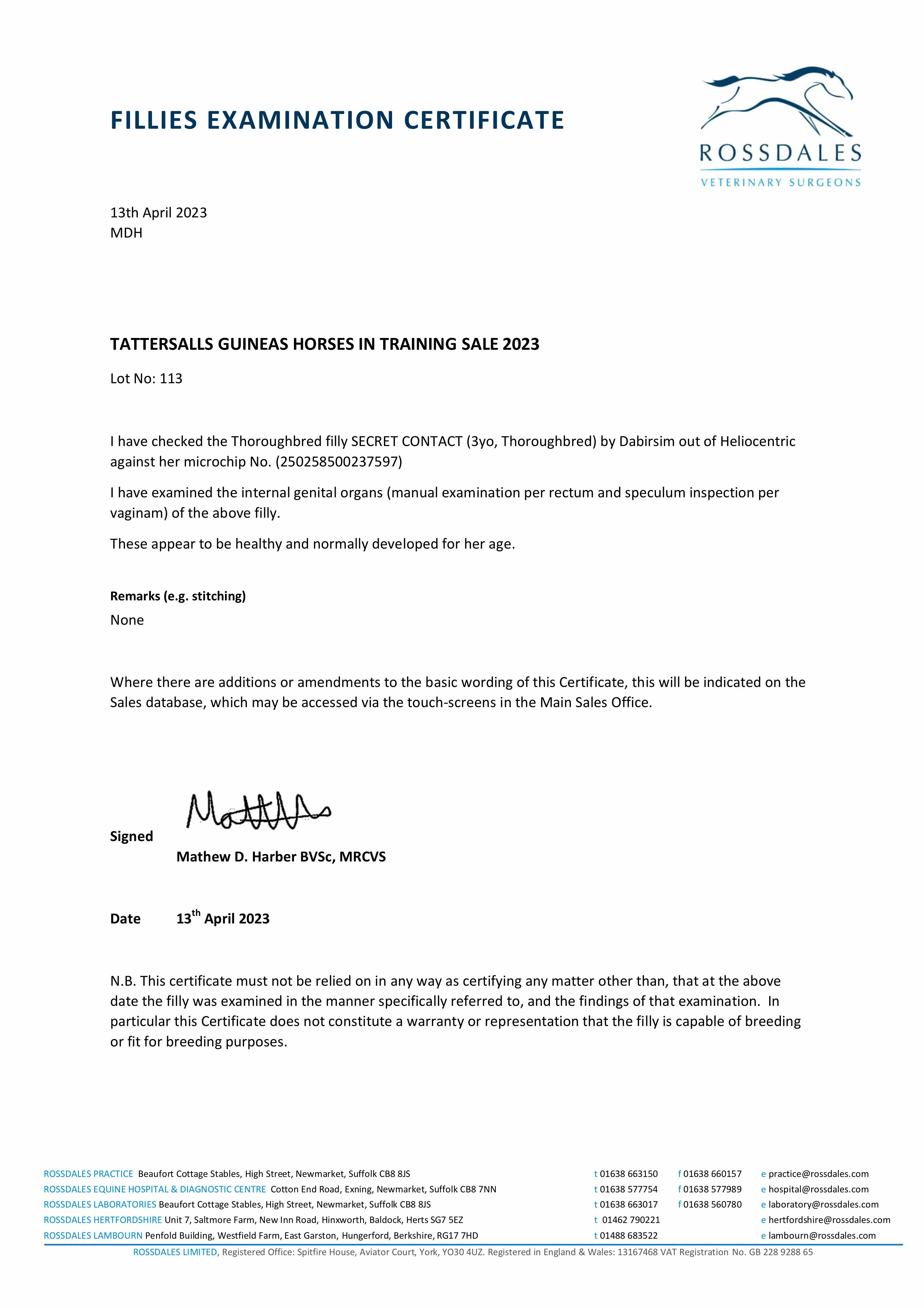 SECRET CONTACT (FR), placed 3 times at 3 years, 2023.