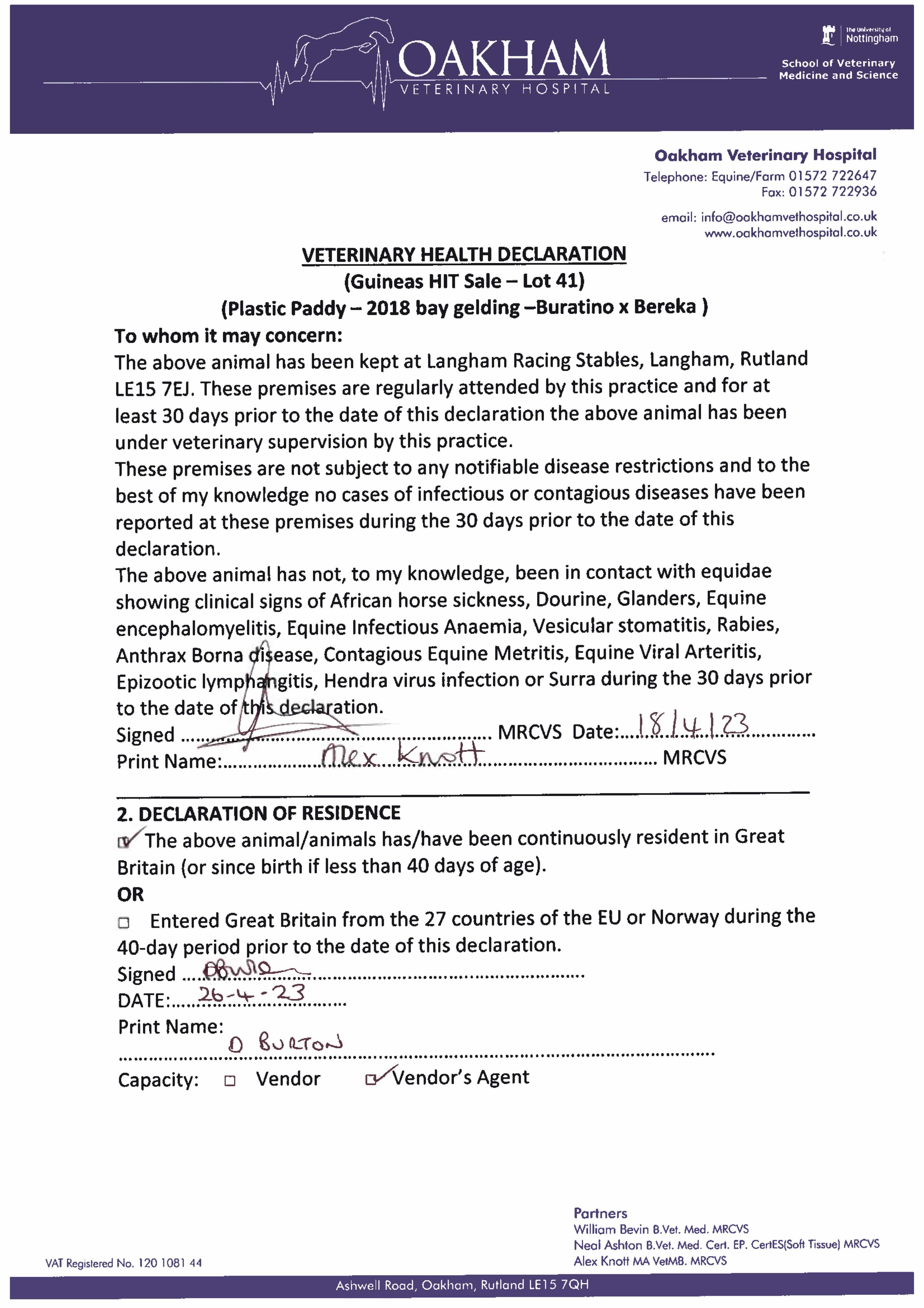 Consignor: Langham Racing Stables (M. Appleby)