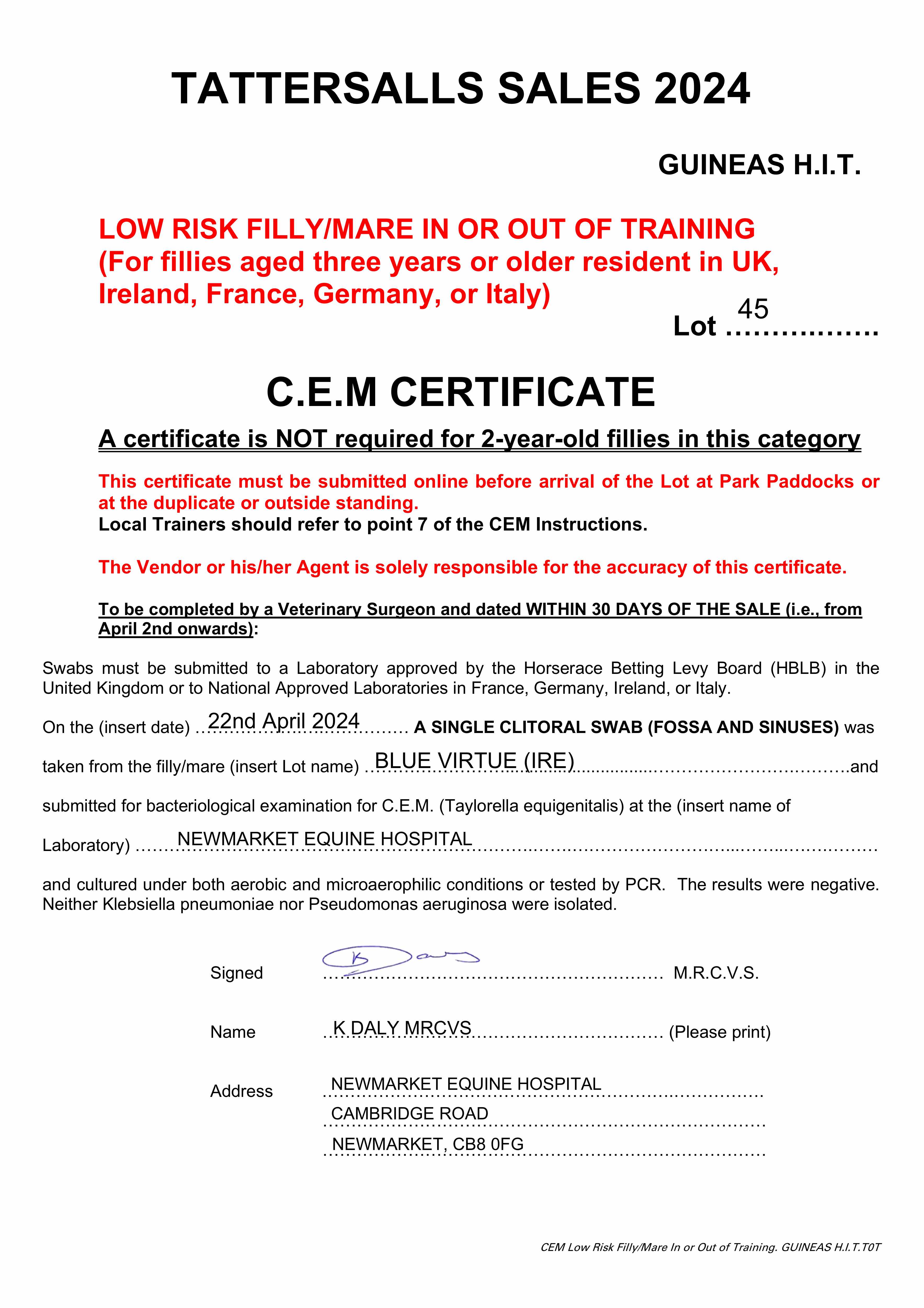 Craven Breeze Up Sale 2024 lot 78 F. by King of Change (GB) 2022, Donovan Bloodstock, Ireland=>Sheikh Abdullah Almalek Alsabah 80,000 gns