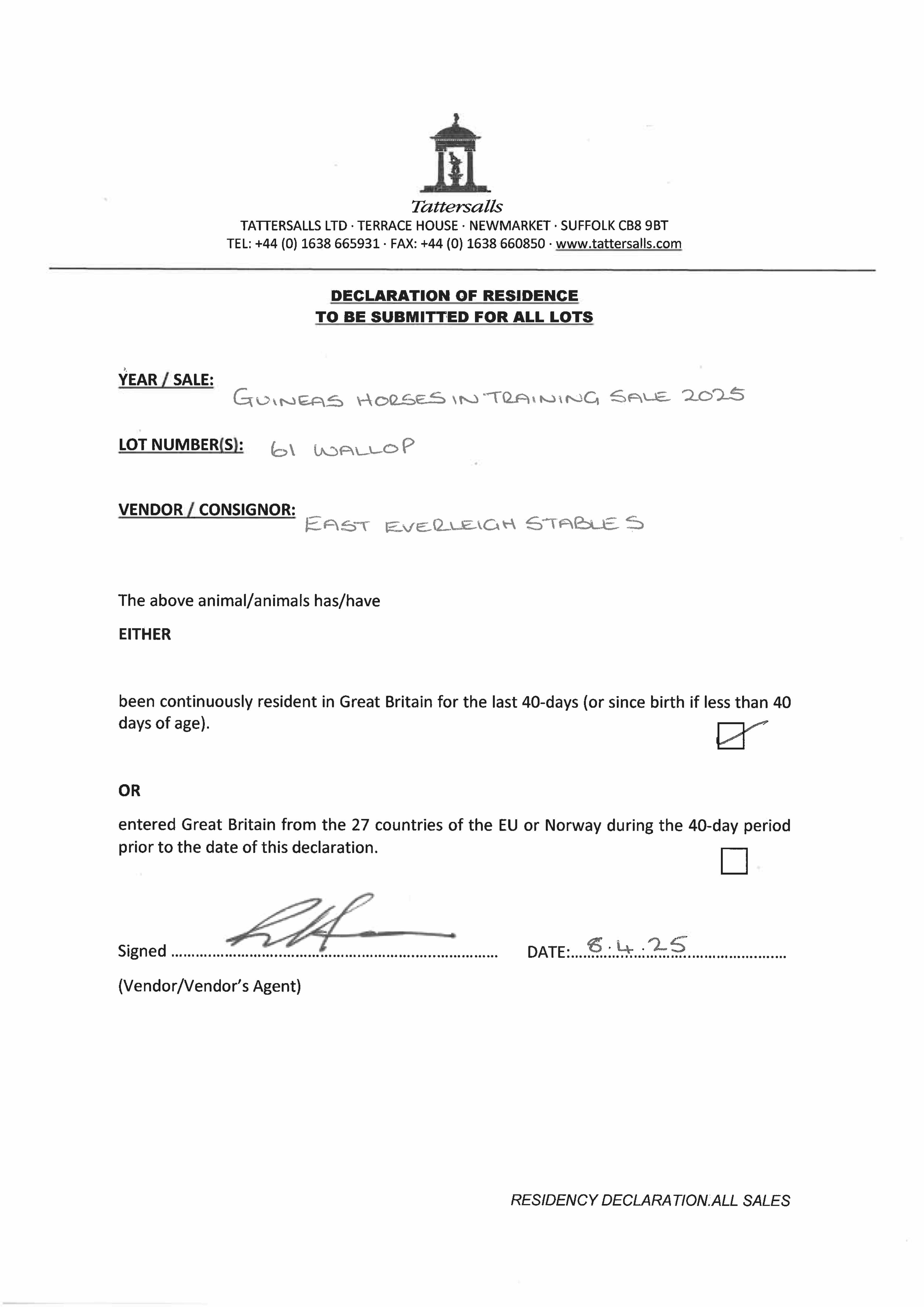 Autumn Horses In Training Sale 2024 lot 319, Baroda Stud, Ireland=>Vendor 7,000 gns