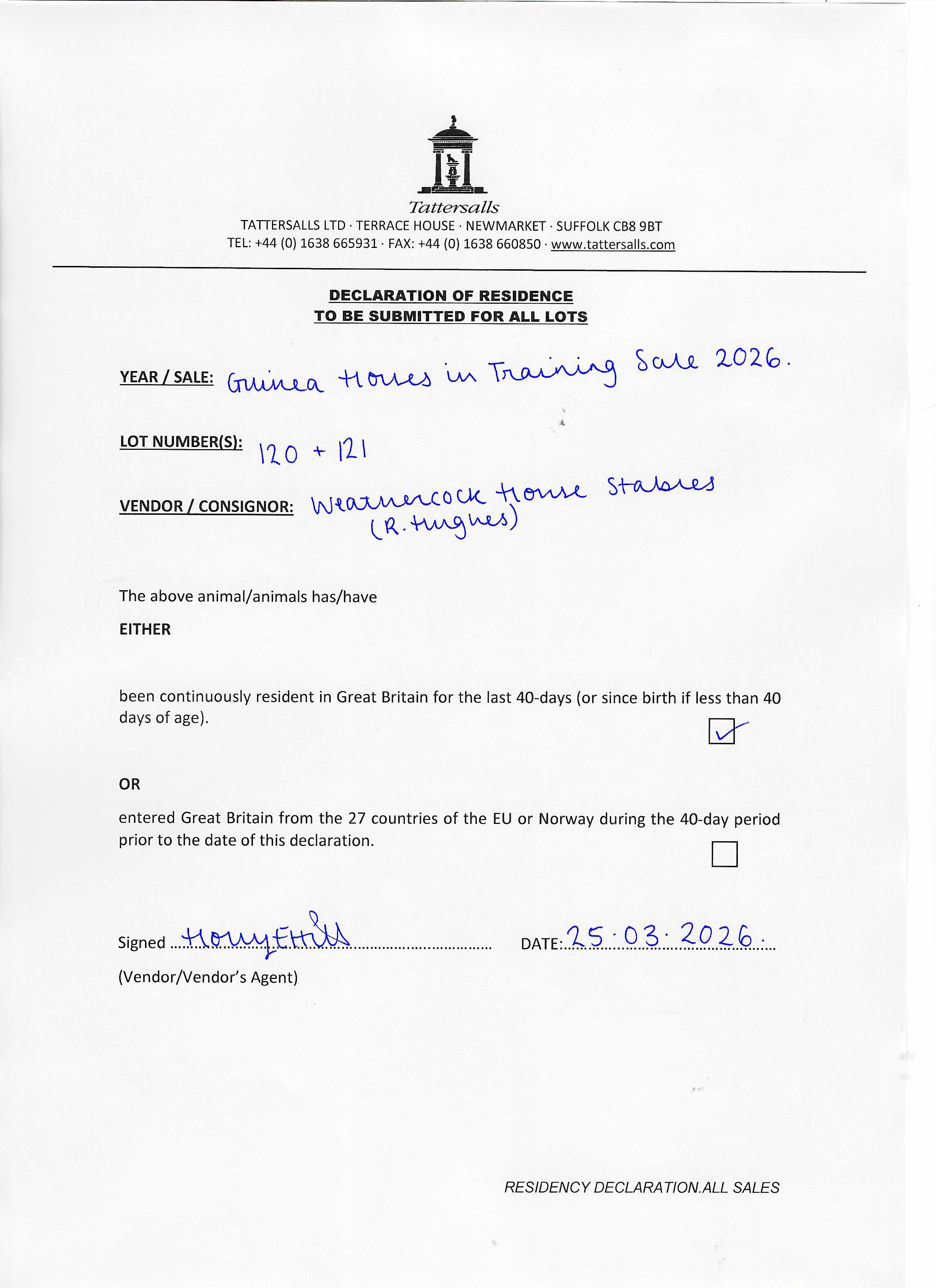 Consignor: Weathercock House Stables (R. Hughes)