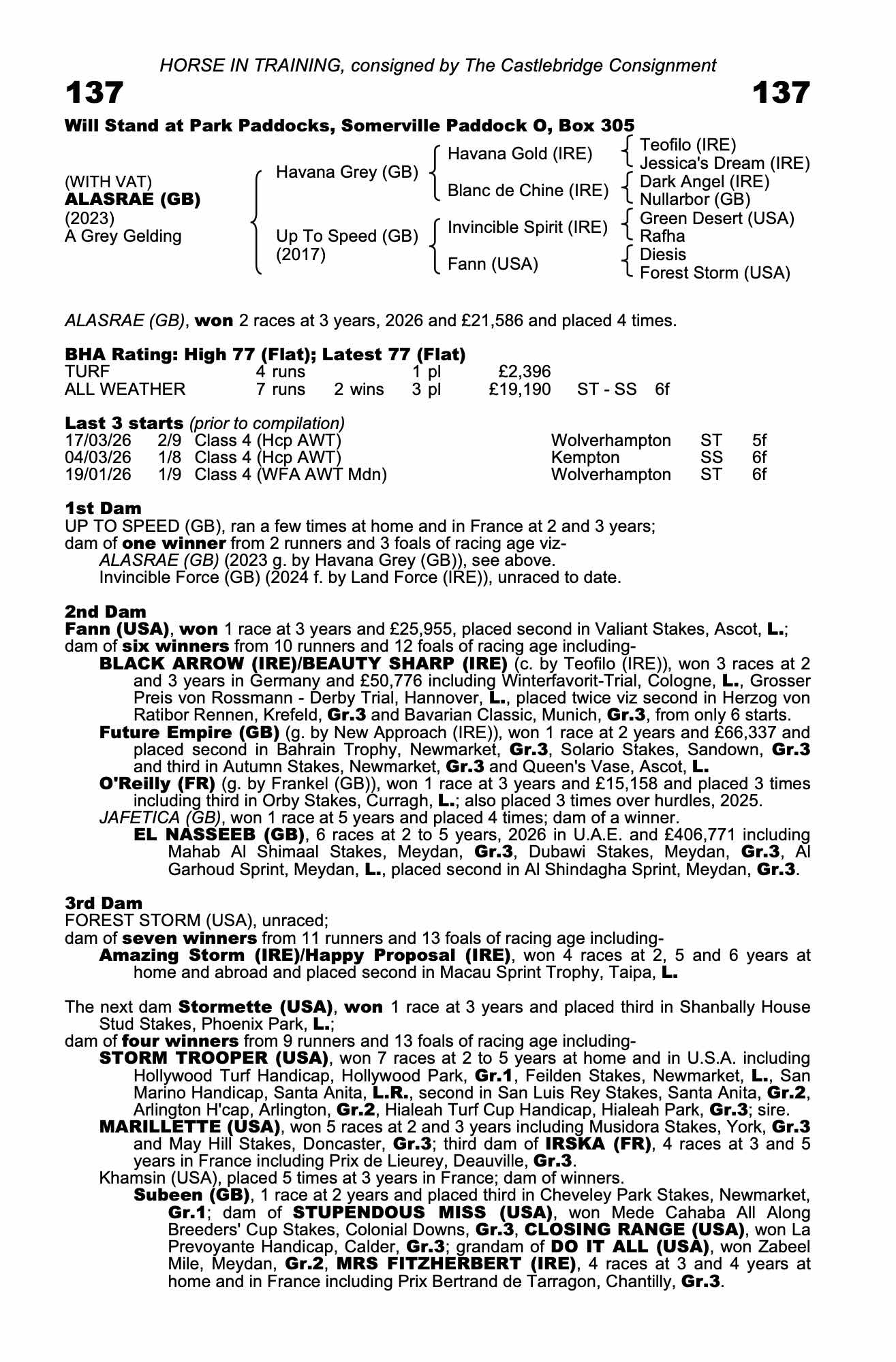 83| 2026 | Mar 17 | Wol | 77 | 13/2 | 2-9 | z | Billy Loughnane | a5.1g | 64 | 82 | + |