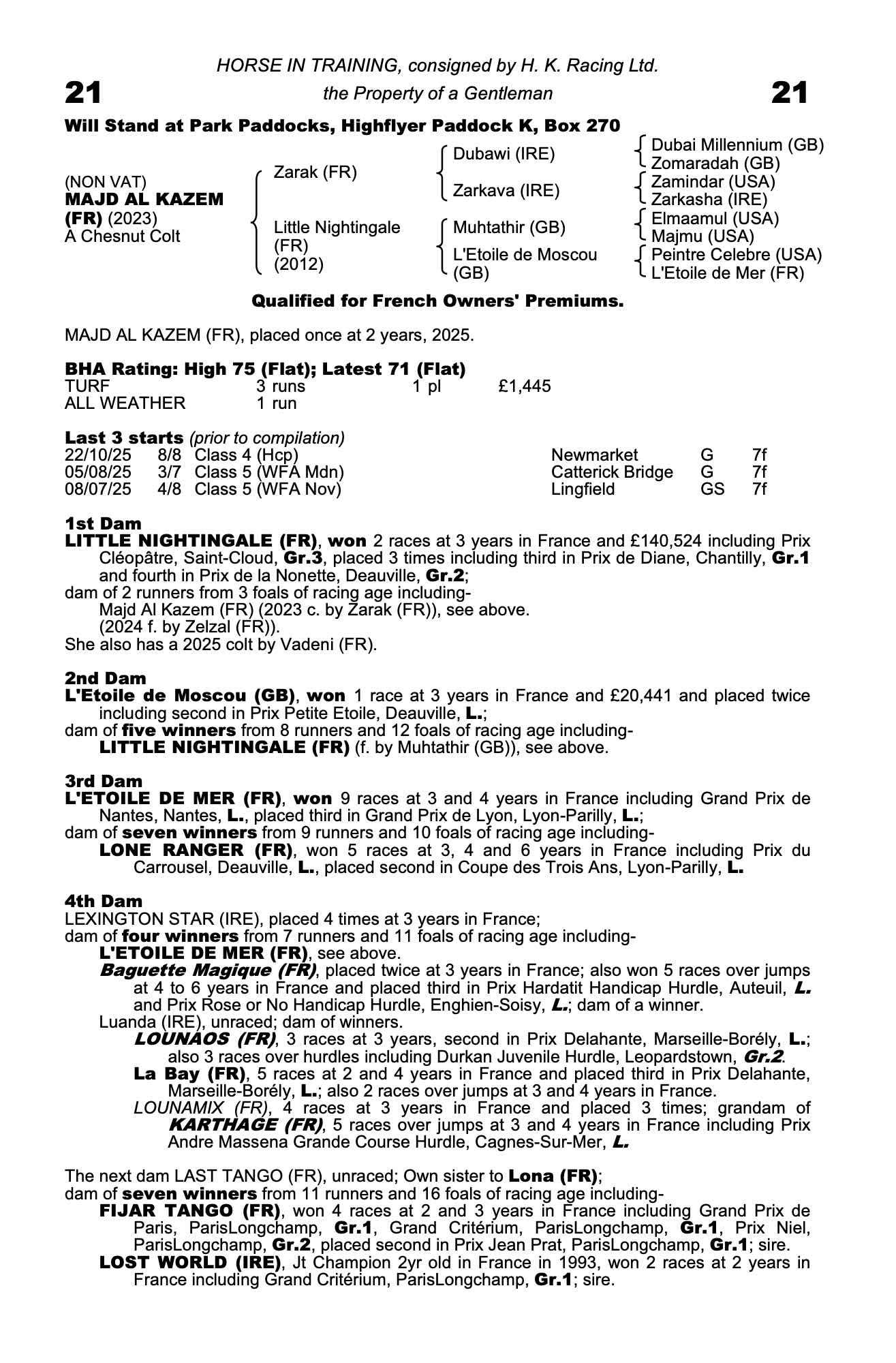 Consignor: H. K. Racing Ltd.