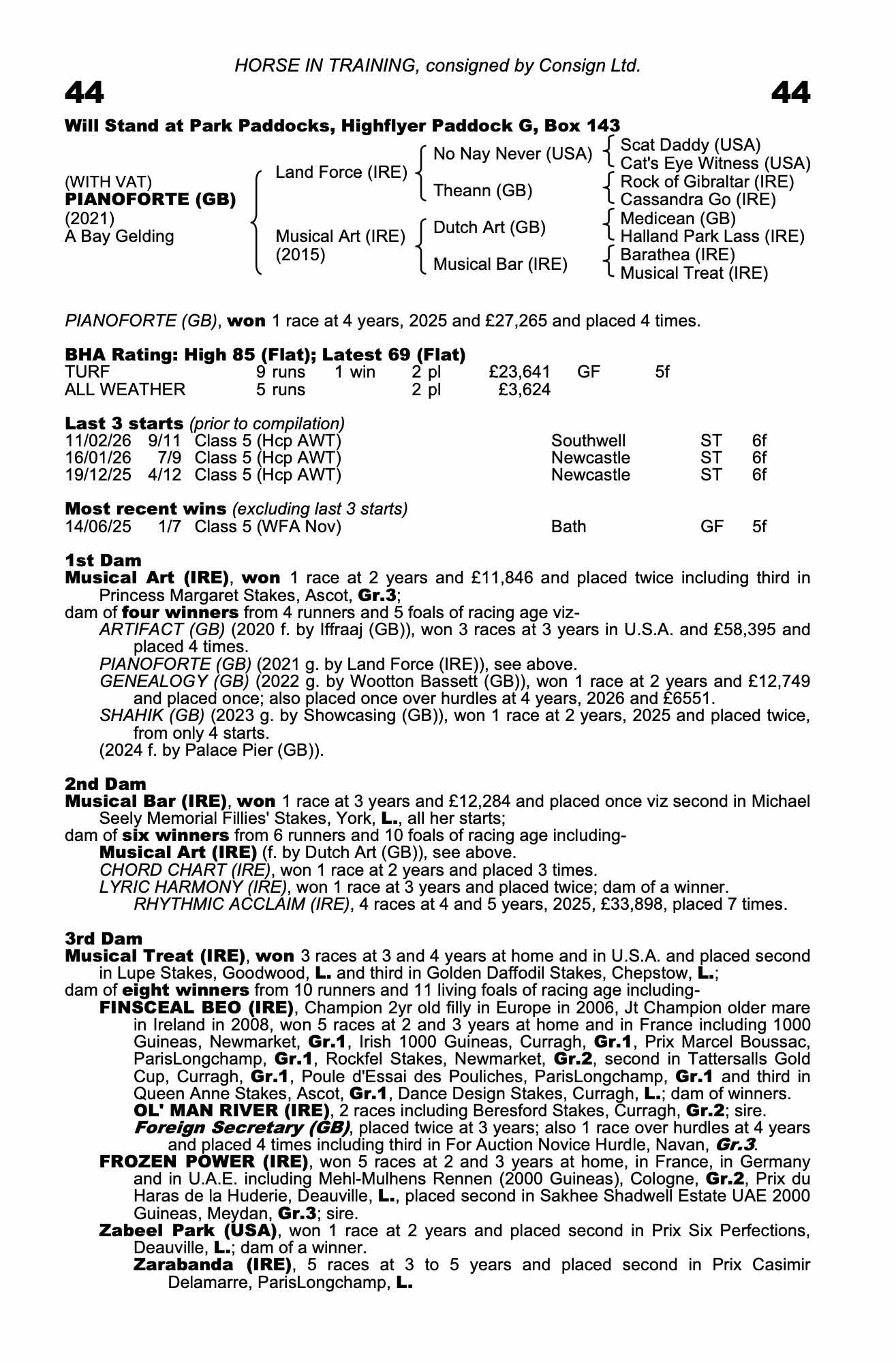 | 2025 | Dec 19 | Nwc | 74 | 9/1 | 4-12 | Dylan Hogan | a6s | 57 | 74 | + | |