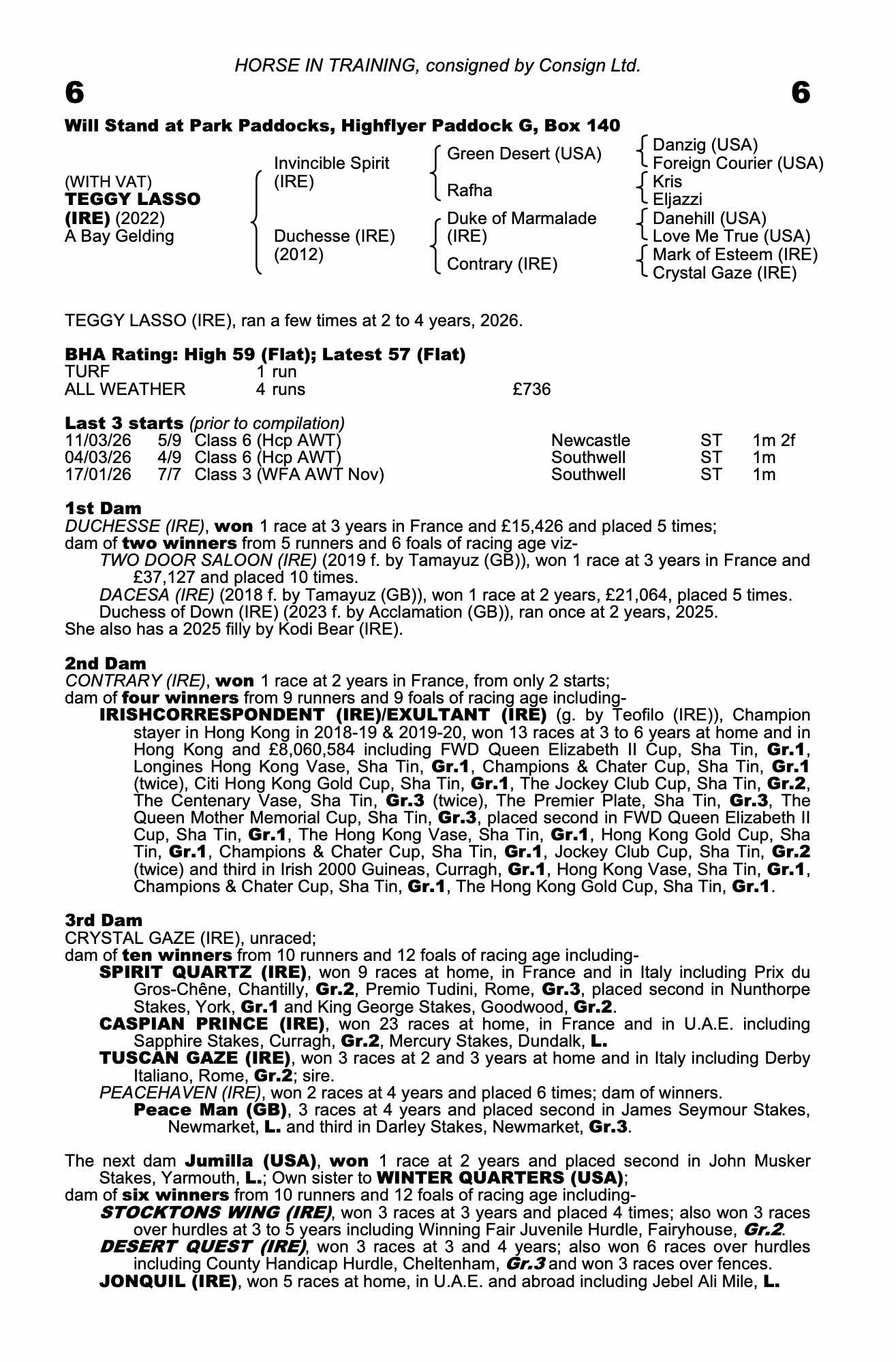 December Mare Sale 2023 lot 2176 Dacesa (IRE) (M. by Tamayuz (GB)), Mickley Stud Ltd.=>Vendor 1,000 gns