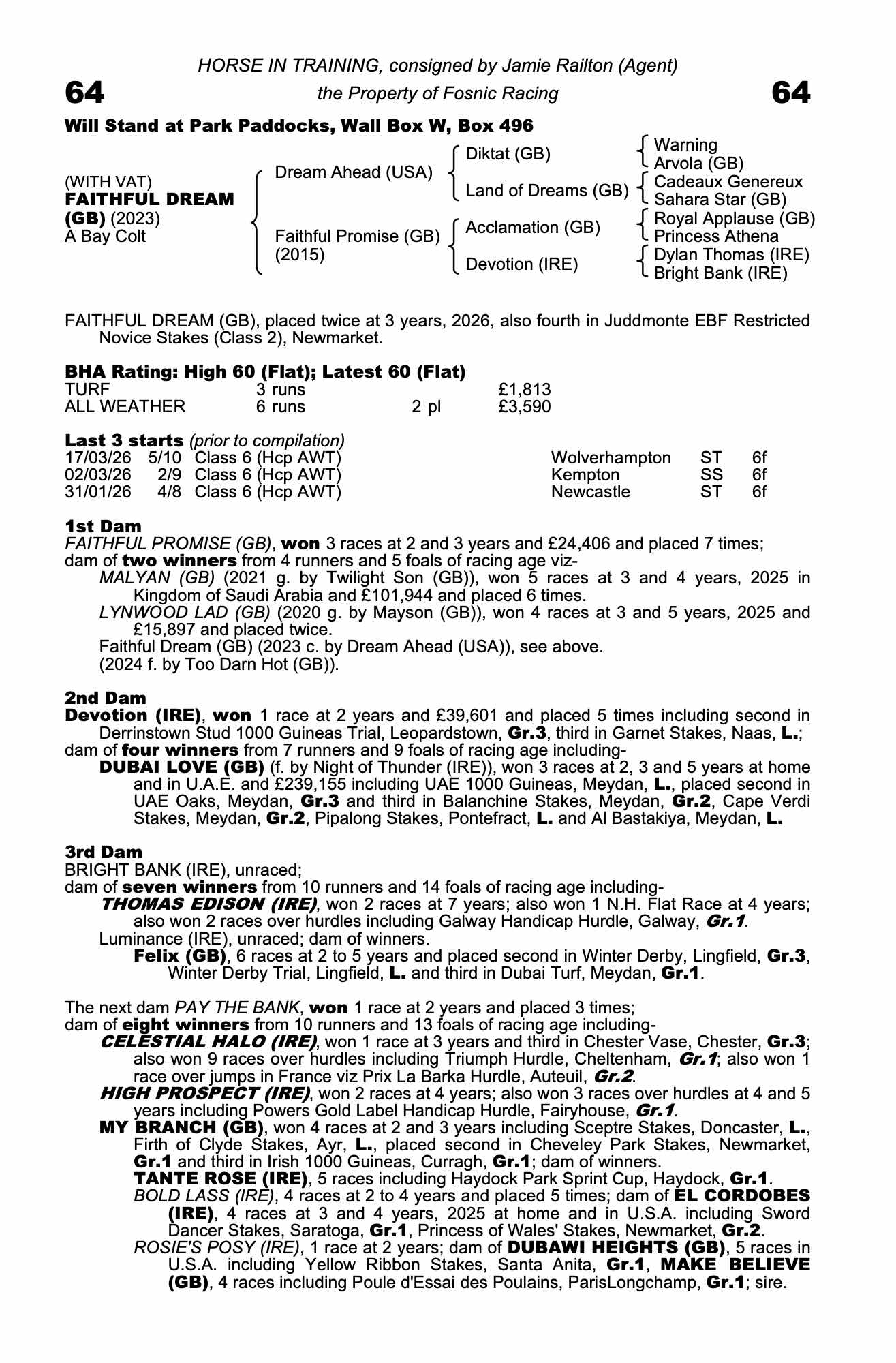 Consignor: Jamie Railton (Agent)