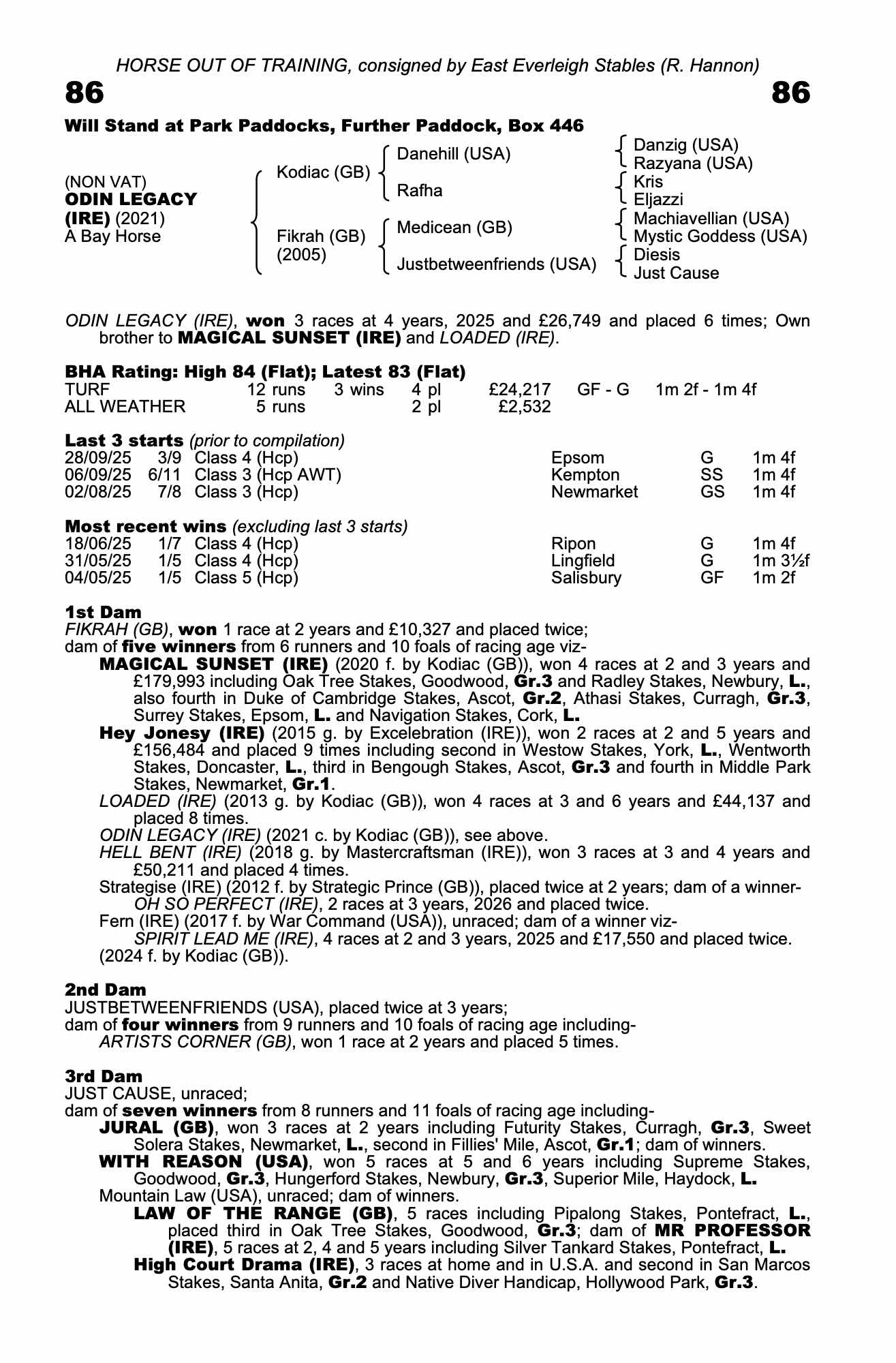 90| 2025 | Sep 28 | Eps | 83 | 16/1 | 3-9 | B | George Bass | 12g | 85 | 87 | |