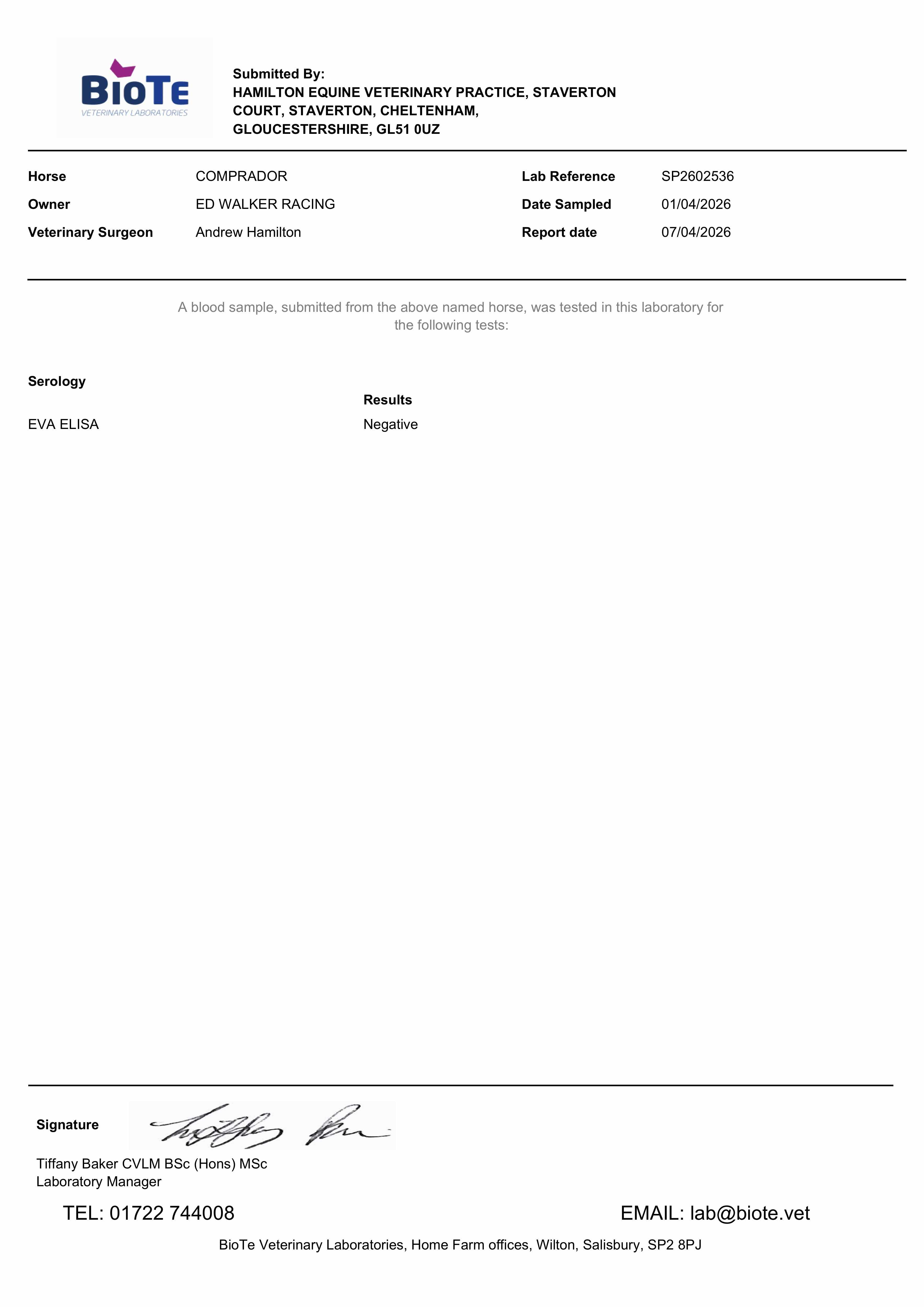 Consignor: Ed Walker Racing