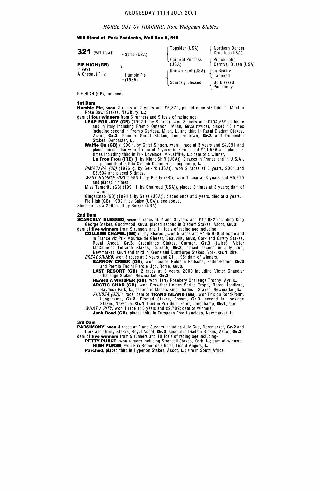 December Mare Sale 2002 lot 2177 Pie High (GB) (F.), Manor Farm Stud=>Vendor 67,000 gns