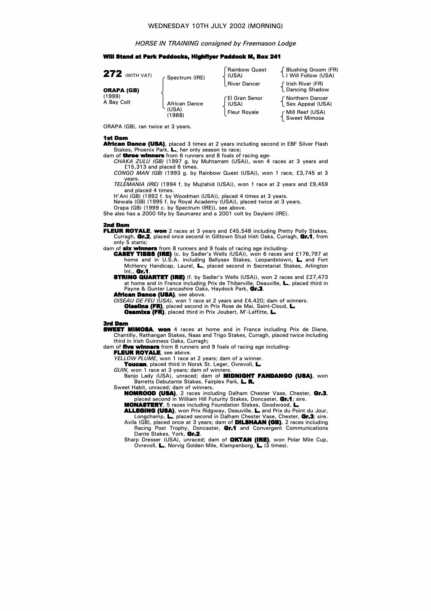 September Yearling Sale 2003 lot 411 F. by Indian Danehill (IRE) 2002, Monksgrange Stud (Agent)=>David Mc Greavy B/S €32,000