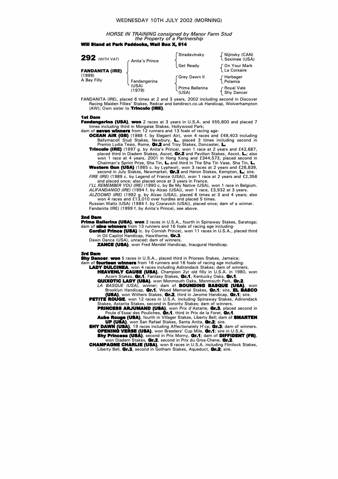 Consignor: Manor Farm Stud