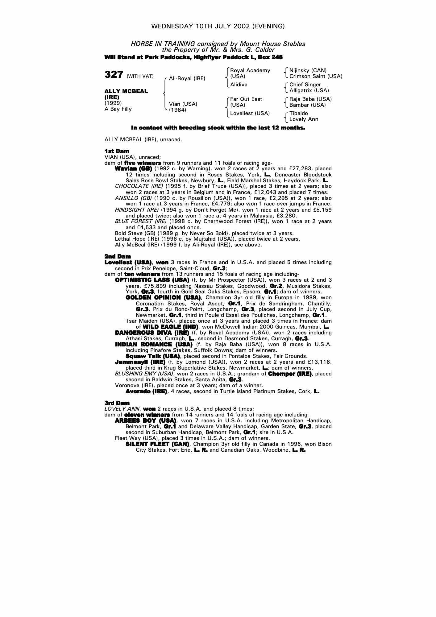 October Yearling Sale 2000 lot 553 F. , Mr Max Ervine=>James Given 9,000 gns