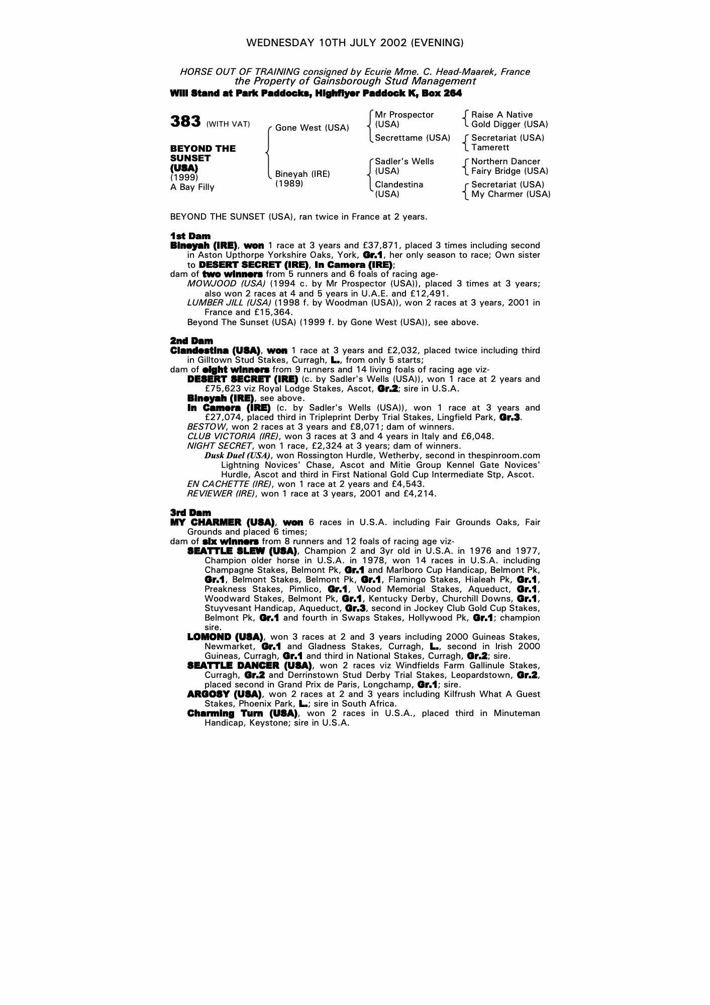 July Sale 2000 lot 63 Bryce Canyon (USA) (F. by Gulch (USA)), Gainsborough Stud Management=>R O'Gorman Bloodstock 44,000 gns