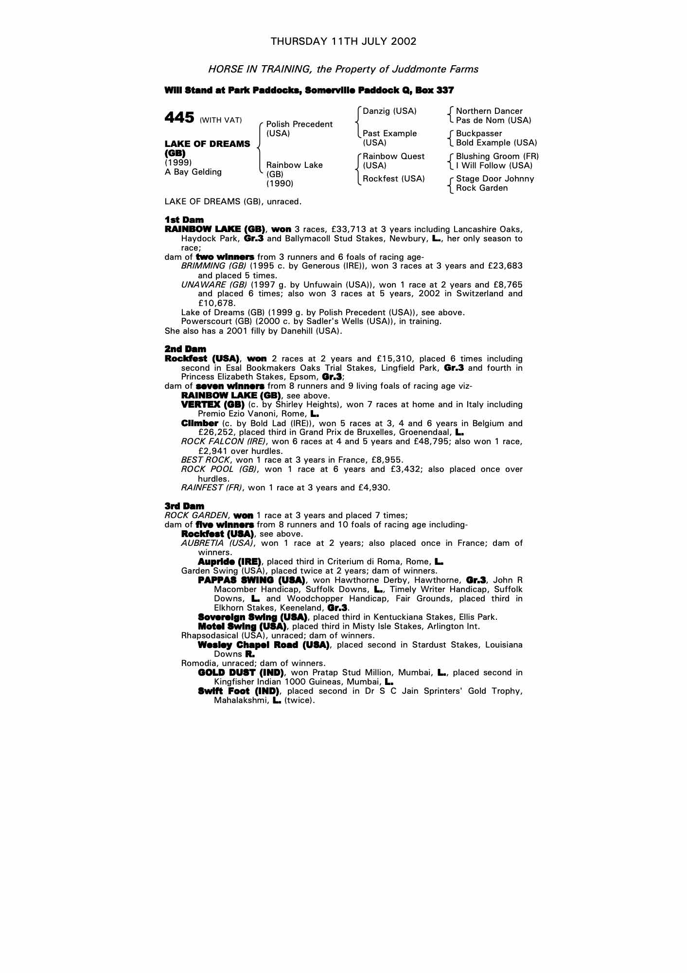 December Mare Sale 2001 lot 1624 Polish Lake (GB) (F.), Juddmonte Farms=>A Skiffington 10,000 gns