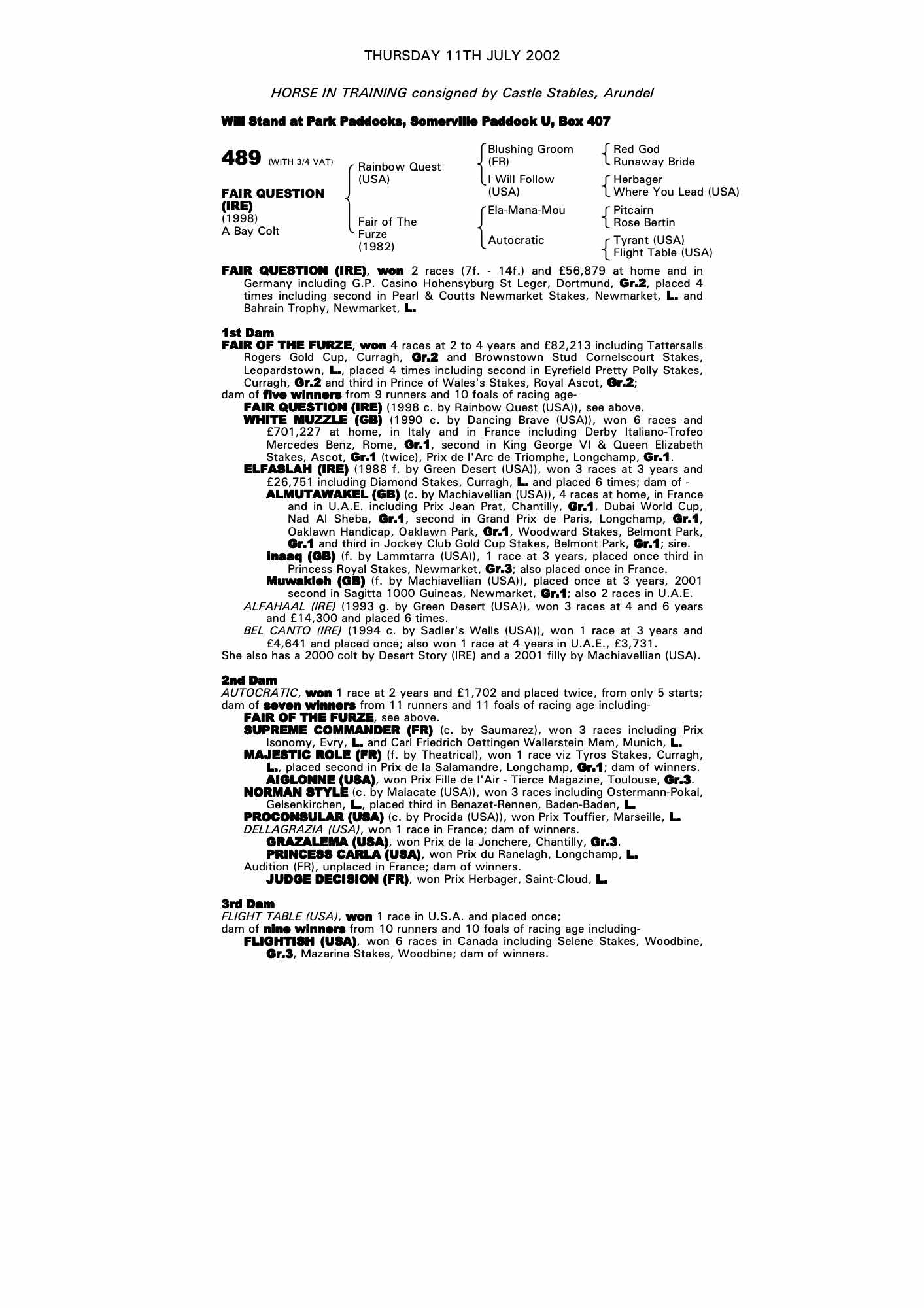 Houghton Yearling Sale 2002 lot 186 F. by Machiavellian (USA) 2001, Airlie Stud, Ireland=>Shadwell Estate Company 560,000 gns