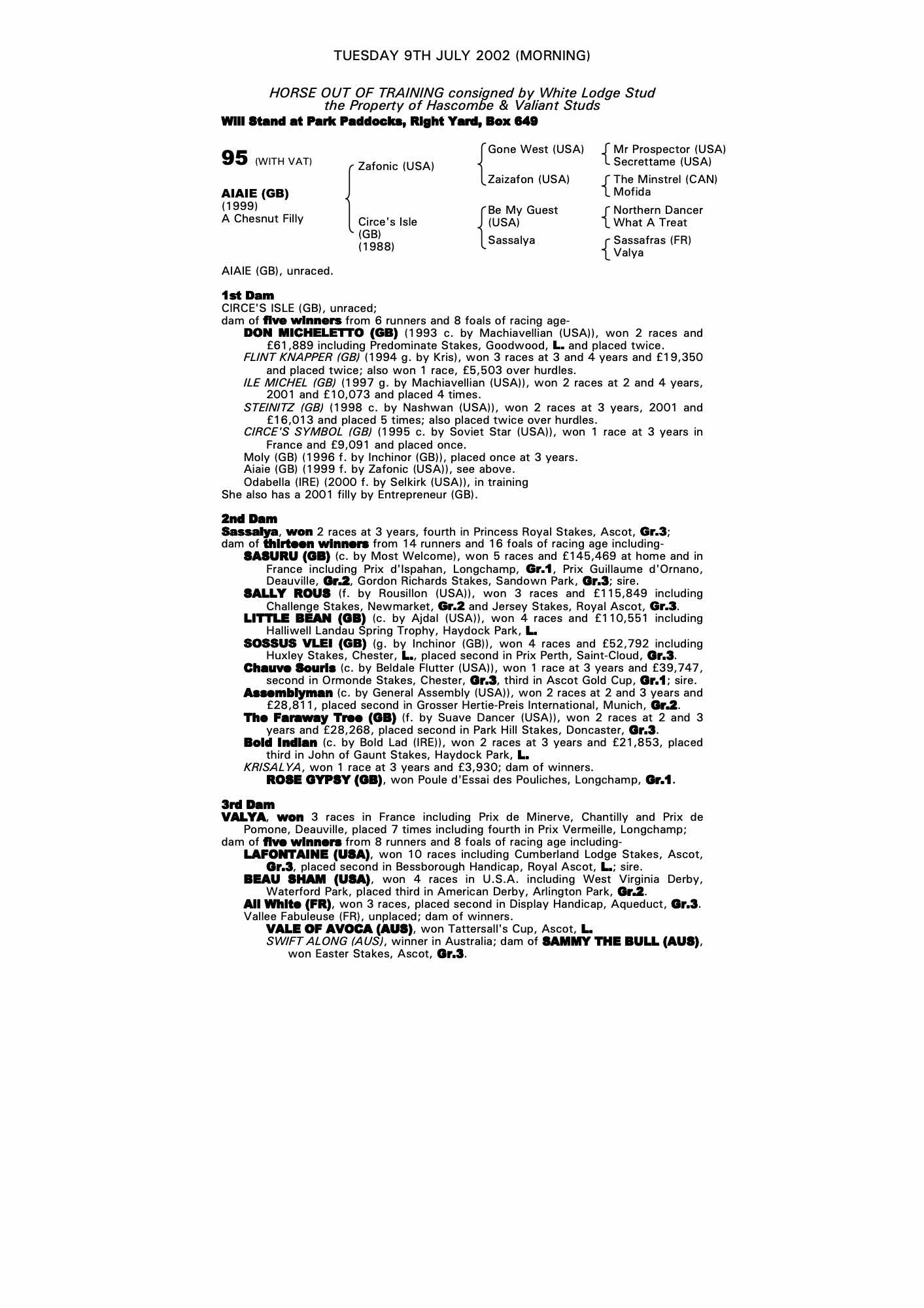 December Mare Sale 2001 lot 2203 Moly (GB) (M. by Inchinor (GB)), The National Stud=>Vendor 16,000 gns